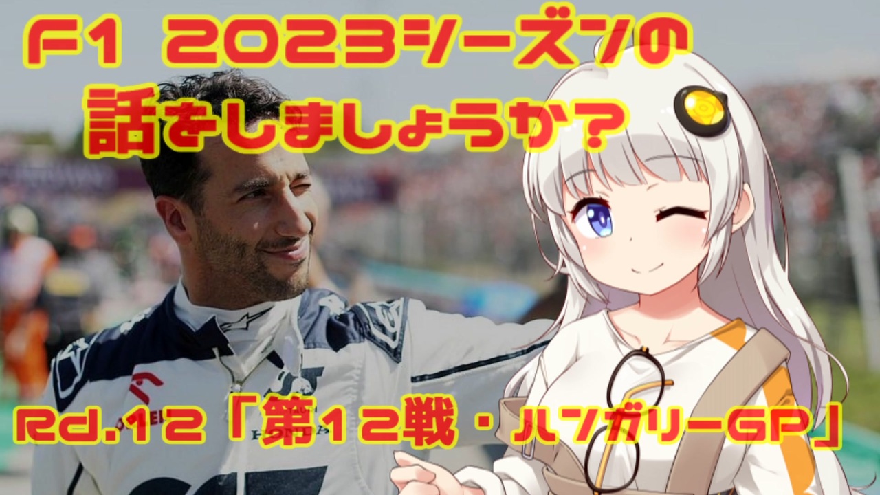 「“F1オージースマイル”リカルド復帰!」」by紲星あかり<br><br><br>おはこんばんちは、紲星あかりです。<br>この動画は、F1 2023年シーズンをダイジェストでお送りしています。<br>今回は第12戦・ハンガリーGPをお送りします。<br>前回のGPで輝きを取り戻したマクラーレン。今後のレースでメルセデス、アストンマーチン<br>フェラーリのコンストラクターズ2位争いに加わり、名門復活となるのでしょうか?<br><br><br><br><br><br><span style="color: red;">(ご注意)この動画の情報は真実とは限りません。また、誤字・脱字が含まれる場合があります。ご了承ください。</span><br><br>前→第11戦・イギリスGP <a href="https://www.nicovideo.jp/watch/sm42478985" class="watch">sm42478985</a><br>次→第13戦・ベルギーGP <a href="https://www.nicovideo.jp/watch/sm42565292" class="watch">sm42565292</a><br><br>F12023シーズンの話をしましょうか?マイリスト→<a href="https://www.nicovideo.jp/mylist/74761174" target="_blank" rel="noopener">mylist/74761174</a><br> <br><br>うp主のF1動画シリーズ<br><br>F12022シーズンの話をしましょうか?マイリスト→<a href="https://www.nicovideo.jp/mylist/72892585" target="_blank" rel="noopener">mylist/72892585</a><br>F12021シーズンの話をしましょうか?マイリスト→<a href="https://www.nicovideo.jp/mylist/70735663" target="_blank" rel="noopener">mylist/70735663</a><br>F12020シーズンの話をしましょうか?マイリスト→<a href="https://www.nicovideo.jp/mylist/67651731" target="_blank" rel="noopener">mylist/67651731</a> <br>F12019シーズンの話をしましょうか?<span style="color: #000000; font-size: 14px;">マイリスト</span><span style="color: #000000; font-size: 13px;">→</span><a href="https://www.nicovideo.jp/mylist/64678414" target="_blank" rel="noopener">mylist/64678414</a><br>F12018シーズンの話をしましょうか?<span style="color: #000000; font-size: 14px;">マイリスト</span><span style="color: #000000; font-size: 13px;">→</span><a href="https://www.nicovideo.jp/mylist/61514606" target="_blank" rel="noopener">mylist/61514606</a><br>F1の話をしましょうか?マイリスト→<a href="https://www.nicovideo.jp/mylist/40499353" target="_blank" rel="noopener">mylist/40499353</a><br>F1の話をしましょうか?OPフルバージョン→<a href="https://www.nicovideo.jp/mylist/59030210" target="_blank" rel="noopener">mylist/59030210</a><br>F1 CM集→<a href="https://www.nicovideo.jp/mylist/57297507" target="_blank" rel="noopener">mylist/57297507</a><br><br>