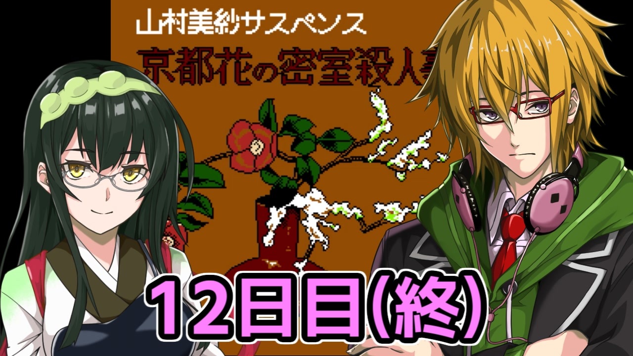 2023年7月 ファミコン動画投稿祭の参加作品です。<br>タイトーの推理アドベンチャーゲーム「京都 花の密室殺人事件」のフルボイスプレイです。<br>通常のフルボイスプレイの他、主人公のセリフを補完し、音声だけ聞いても話がわかるようにしてあります。<br><br>■フルボイスキャスト<br>主人公:Voicepeak男性3<br>キャサリン:Voicepeak邪神ちゃん<br>狩矢荘助:CoeiroinkAI声優-銀芽<br>マダム:Voiceroid東北イタコ<br>女中:Voiceroid琴葉茜<br>表具屋:VoiceVOX青山龍星<br><br>■案内役<br>Voiceroid水奈瀬コウ、東北ずん子<br><br>■その他使用素材<br>・ゲーム「京都 花の密室殺人事件」:株式会社タイトー<br>・水奈瀬コウ、東北ずん子立ち絵:物見戸<br>・スケジュールの顔アイコン:物見戸、こーすけさんたまりあ、青トキエ、日々ツナ<br>