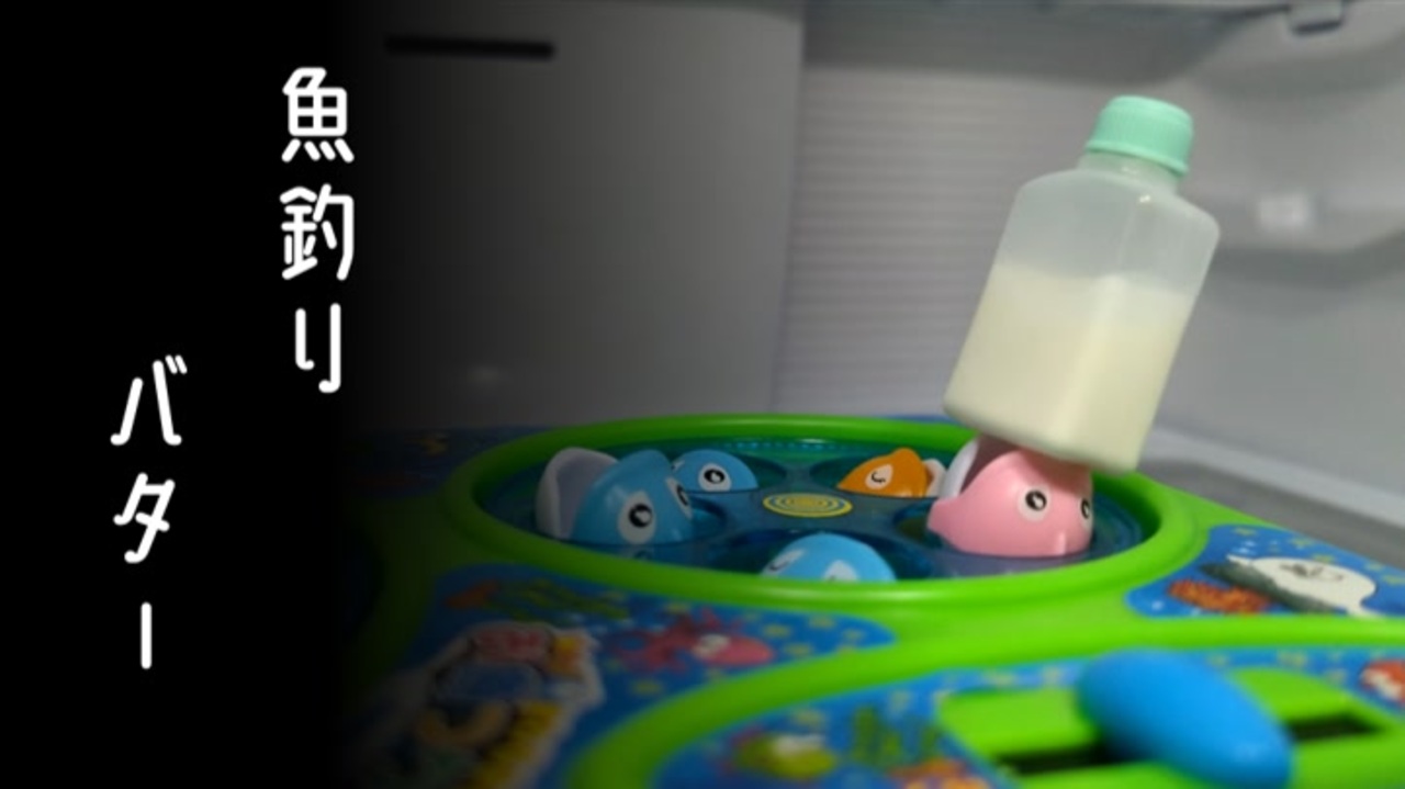 魚釣りのおもちゃでバターを作りたかった動画