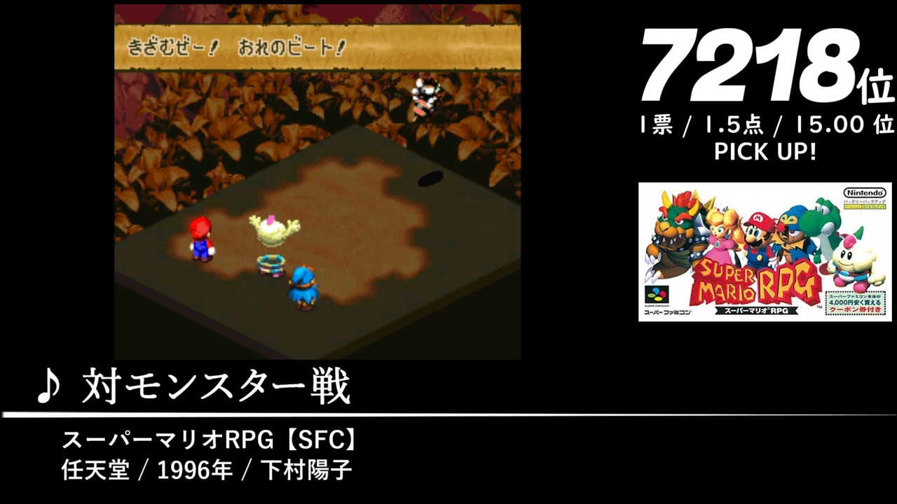 補遺編として4曲、Part.1~20のOPに使用した20曲、計24曲を収録しています。<br>2022年5月1日~8月1日にかけて開催された「第15回みんなで決めるゲーム音楽ベスト100」の結果を動画化したものです。<span style="font-size: 10px;">集計人≠動画制作者</span><br><br><br>↓全体の結果はこちら↓<br><a href="https://w.atwiki.jp/gamemusicbest100/pages/9902.html" target="_blank" rel="noopener nofollow">https://w.atwiki.jp/gamemusicbest100/pages/9902.html</a><br><br><br>※収録時間が5分以上の楽曲です。<br><a href="#" class="seekTime" data-seekTime="8:43" onclick="seekNicoPlayer('#8:43'); return false;">#8:43</a>~<br><br><br>補遺・番外編②→<a href="https://www.nicovideo.jp/watch/sm43184458" class="watch">sm43184458</a><br>第15回まとめ→<a href="https://www.nicovideo.jp/mylist/74713060" target="_blank" rel="noopener">mylist/74713060</a><br><br><br>【ショートカット】<br>補遺①<a href="#" class="seekTime" data-seekTime="0:00" onclick="seekNicoPlayer('#0:00'); return false;">#0:00</a> / 補遺②<a href="#" class="seekTime" data-seekTime="4:27" onclick="seekNicoPlayer('#4:27'); return false;">#4:27</a> / 補遺③<a href="#" class="seekTime" data-seekTime="8:43" onclick="seekNicoPlayer('#8:43'); return false;">#8:43</a> / 補遺④<a href="#" class="seekTime" data-seekTime="17:06" onclick="seekNicoPlayer('#17:06'); return false;">#17:06</a> / PU①<a href="#" class="seekTime" data-seekTime="19:33" onclick="seekNicoPlayer('#19:33'); return false;">#19:33</a> / PU②<a href="#" class="seekTime" data-seekTime="23:13" onclick="seekNicoPlayer('#23:13'); return false;">#23:13</a> / PU③<a href="#" class="seekTime" data-seekTime="26:08" onclick="seekNicoPlayer('#26:08'); return false;">#26:08</a> / PU④<a href="#" class="seekTime" data-seekTime="28:19" onclick="seekNicoPlayer('#28:19'); return false;">#28:19</a> / PU⑤<a href="#" class="seekTime" data-seekTime="30:33" onclick="seekNicoPlayer('#30:33'); return false;">#30:33</a> / PU⑥<a href="#" class="seekTime" data-seekTime="33:50" onclick="seekNicoPlayer('#33:50'); return false;">#33:50</a> / PU⑦<a href="#" class="seekTime" data-seekTime="38:48" onclick="seekNicoPlayer('#38:48'); return false;">#38:48</a> / PU⑧<a href="#" class="seekTime" data-seekTime="40:46" onclick="seekNicoPlayer('#40:46'); return false;">#40:46</a> / PU⑨<a href="#" class="seekTime" data-seekTime="44:14" onclick="seekNicoPlayer('#44:14'); return false;">#44:14</a> / PU⑩<a href="#" class="seekTime" data-seekTime="46:09" onclick="seekNicoPlayer('#46:09'); return false;">#46:09</a> / PU⑪<a href="#" class="seekTime" data-seekTime="48:14" onclick="seekNicoPlayer('#48:14'); return false;">#48:14</a> / PU⑫<a href="#" class="seekTime" data-seekTime="49:58" onclick="seekNicoPlayer('#49:58'); return false;">#49:58</a> / PU⑬<a href="#" class="seekTime" data-seekTime="53:46" onclick="seekNicoPlayer('#53:46'); return false;">#53:46</a> / PU⑭<a href="#" class="seekTime" data-seekTime="55:44" onclick="seekNicoPlayer('#55:44'); return false;">#55:44</a> / PU⑮<a href="#" class="seekTime" data-seekTime="58:20" onclick="seekNicoPlayer('#58:20'); return false;">#58:20</a> / PU⑯<a href="#" class="seekTime" data-seekTime="60:05" onclick="seekNicoPlayer('#60:05'); return false;">#60:05</a> / PU⑰<a href="#" class="seekTime" data-seekTime="62:40" onclick="seekNicoPlayer('#62:40'); return false;">#62:40</a> / PU⑱<a href="#" class="seekTime" data-seekTime="65:43" onclick="seekNicoPlayer('#65:43'); return false;">#65:43</a> / PU⑲<a href="#" class="seekTime" data-seekTime="67:27" onclick="seekNicoPlayer('#67:27'); return false;">#67:27</a> / PU⑳<a href="#" class="seekTime" data-seekTime="68:52" onclick="seekNicoPlayer('#68:52'); return false;">#68:52</a>