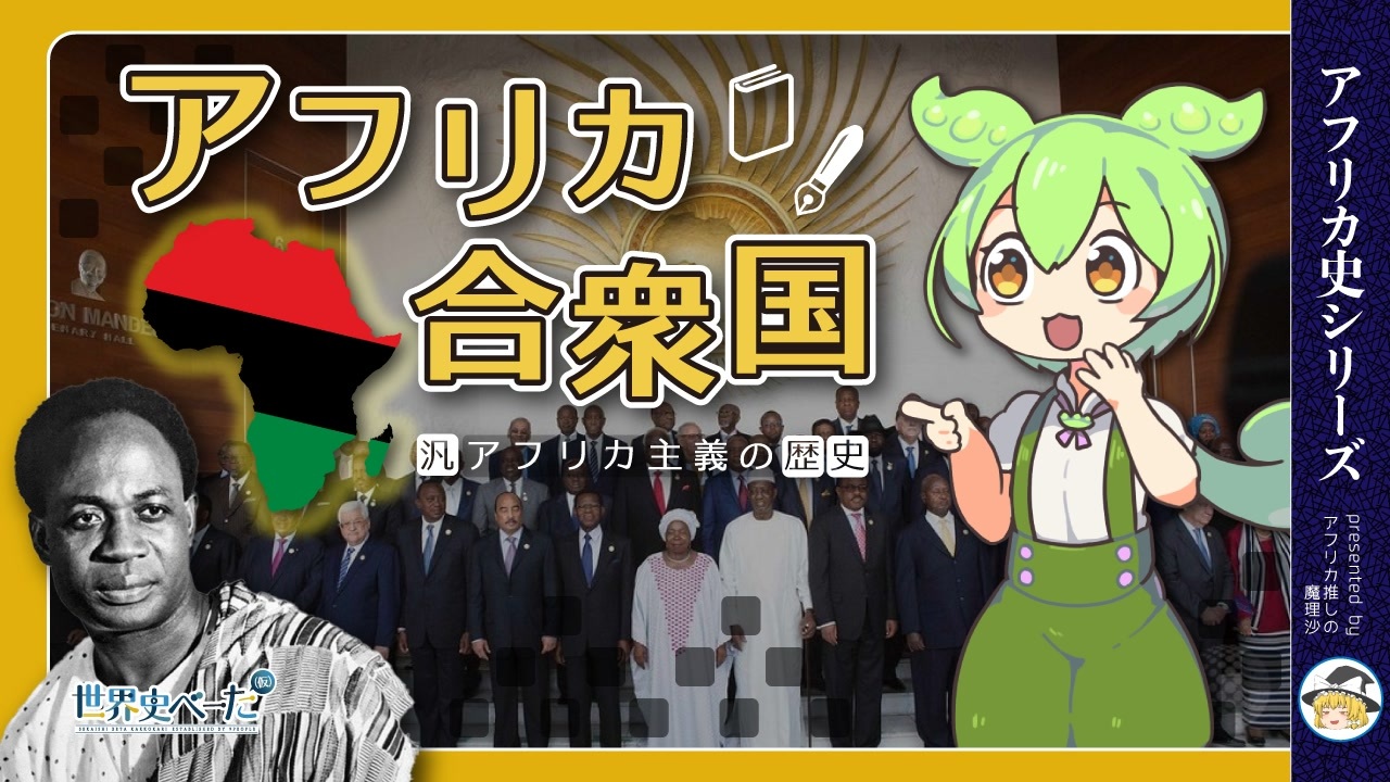<strong>今回はアフリカ諸国が独立する要因となった汎アフリカ主義の歴史と、<br>アフリカ合衆国構想を解説しました。</strong><br>世界史ベータに提供した動画です→ <a href="https://youtu.be/35QEVOOOF4k" target="_blank" rel="noopener nofollow">https://youtu.be/35QEVOOOF4k</a> <br><br><s>魔理沙じゃなくてずんだもんなのはライセンスの関係</s><br>ずんだもんはボイスロイドではなくボイスボックスですが、ニコニコのタグでの使用頻度的にボイスロイド解説とさせていただいてます<br>◆マイリスト→<a href="https://www.nicovideo.jp/mylist/73354161" target="_blank" rel="noopener nofollow">https://www.nicovideo.jp/mylist/73354161</a><br>◆アフリカの情報を上げてるうぷ主のTwitter→<a href="https://twitter.com/AfrikaanerMaris" target="_blank" rel="noopener nofollow">https://twitter.com/AfrikaanerMaris</a><br><br>あといいねくれるとうれしいです(いいねを押すとお礼メッセージで次の動画の予告が見れます!なお<strong>80%で外れる</strong>模様)<br><strong>あといっぱいコメントしてくれるとうぷ主が喜びます。</strong>
