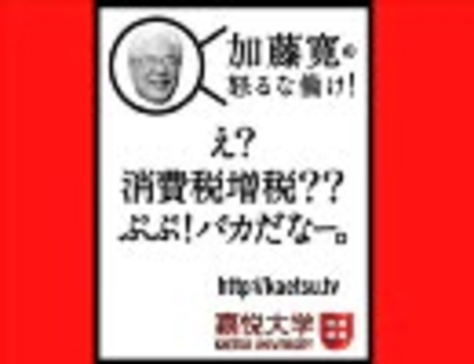 嘉悦大学の学長をしている加藤寛です。今回は消費税についてお話しします。同意、反対、いろいろ皆さんもご意見あるでしょうから、どんどん書き込んで下さい。乱暴な意見も、まずは言ってみる。ただ黙っているより、その方がずっと健全ですから。【その1▼<a href="https://www.nicovideo.jp/watch/sm4256165" class="watch">sm4256165</a> その2▼<a href="https://www.nicovideo.jp/watch/sm4336059" class="watch">sm4336059</a> その3▼<a href="https://www.nicovideo.jp/watch/sm4415185" class="watch">sm4415185</a> その4▼<a href="https://www.nicovideo.jp/watch/sm4485769" class="watch">sm4485769</a> その5▼<a href="https://www.nicovideo.jp/watch/sm4567500" class="watch">sm4567500</a> その6▼<a href="https://www.nicovideo.jp/watch/sm4651446" class="watch">sm4651446</a>】