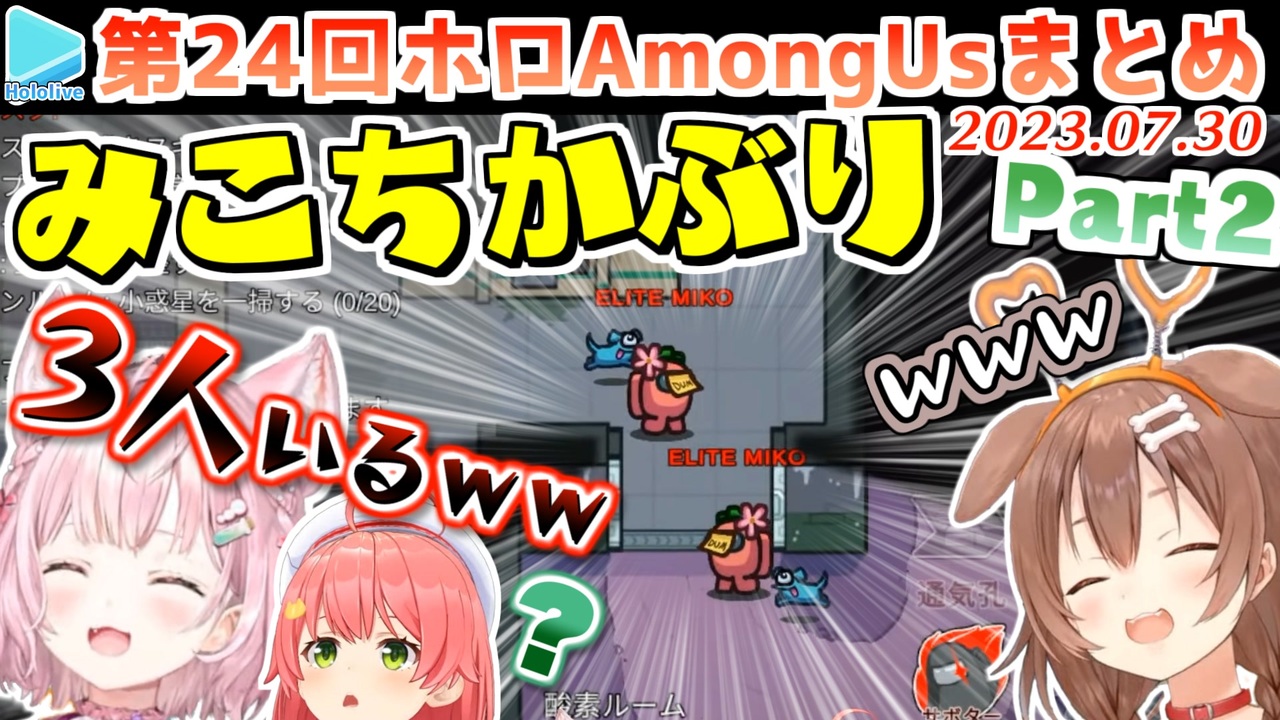 <a href="#" class="seekTime" data-seekTime="00:00" onclick="seekNicoPlayer('#00:00'); return false;">#00:00</a> 第4試合目<br><a href="#" class="seekTime" data-seekTime="08:37" onclick="seekNicoPlayer('#08:37'); return false;">#08:37</a> 第5試合目<br><a href="#" class="seekTime" data-seekTime="17:17" onclick="seekNicoPlayer('#17:17'); return false;">#17:17</a> 第6試合目<br><br>元動画様はこちら<br>【Amongus】深夜の #突発ホロライブ人狼だ~れだ!【ロボ子さん /ホロライブ】<br><a href="https://youtu.be/Ta1w8YGLODA" target="_blank" rel="noopener nofollow">https://youtu.be/Ta1w8YGLODA</a><br><br>【突発ホロライブ 】月末のAmongUSじゃぁあああああああ!!!!【ホロライブ/白上フブキ】<br><a href="https://youtu.be/WSkdIpP48cg" target="_blank" rel="noopener nofollow">https://youtu.be/WSkdIpP48cg</a><br><br>【 突発ホロライブ 】突発で集うホロAmongUs!!!!!!!!!【ホロライブ/さくらみこ】<br><a href="https://youtu.be/k_z3OyC5kOQ" target="_blank" rel="noopener nofollow">https://youtu.be/k_z3OyC5kOQ</a><br><br>【突発ホロライブ】ころね支店【among us】<br><a href="https://youtu.be/GbnM0-7iMK8" target="_blank" rel="noopener nofollow">https://youtu.be/GbnM0-7iMK8</a><br><br>【Among Us】突発ホロライブ 宇宙へ…【獅白ぼたん/ホロライブ】<br><a href="https://youtu.be/MmfCsxftoyQ" target="_blank" rel="noopener nofollow">https://youtu.be/MmfCsxftoyQ</a><br><br>アモアスで1回も死なず、正確に推理する女【桃鈴ねね/突発ホロライブ 】<br><a href="https://youtu.be/R-uBQ8NzWvc" target="_blank" rel="noopener nofollow">https://youtu.be/R-uBQ8NzWvc</a><br><br>【 突発ホロライブ 】AmongUsやるよおおおおおおおおわあああああい!!!【博衣こより/ホロライブ】<br><a href="https://youtu.be/oWW_vXWFOv4" target="_blank" rel="noopener nofollow">https://youtu.be/oWW_vXWFOv4</a><br><br>【突発ホロライブ】ひさびさのあもあす!!宇宙人狼!!大丈夫、座学はばっちり(なはず)【風真いろは/ホロライブ】<br><a href="https://youtu.be/8rgl9ngDF5U" target="_blank" rel="noopener nofollow">https://youtu.be/8rgl9ngDF5U</a><br><br>Roboco Ch. - ロボ子 <a href="https://t.co/9Tw5lajPeC" target="_blank" rel="noopener nofollow">https://t.co/9Tw5lajPeC</a><br>フブキCh。白上フブキ <a href="https://t.co/R9TNhC7sPO" target="_blank" rel="noopener nofollow">https://t.co/R9TNhC7sPO</a><br>Miko Ch. さくらみこ <a href="https://t.co/FM8eBkuiOO" target="_blank" rel="noopener nofollow">https://t.co/FM8eBkuiOO</a><br>Korone Ch. 戌神ころね <a href="https://t.co/qeTXwRU2F1" target="_blank" rel="noopener nofollow">https://t.co/qeTXwRU2F1</a><br>Nene Ch.桃鈴ねね <a href="https://t.co/ZKkIB3TE9S" target="_blank" rel="noopener nofollow">https://t.co/ZKkIB3TE9S</a><br>Botan Ch.獅白ぼたん <a href="https://t.co/IWecN1QB4o" target="_blank" rel="noopener nofollow">https://t.co/IWecN1QB4o</a><br>Koyori ch. 博衣こより - holoX - <a href="https://t.co/U4G9NUjWs5" target="_blank" rel="noopener nofollow">https://t.co/U4G9NUjWs5</a><br>Iroha ch. 風真いろは - holoX - <a href="https://t.co/3uBFLQOmau" target="_blank" rel="noopener nofollow">https://t.co/3uBFLQOmau</a><br /><span style="color: #b7b7b7; font-size: 10px;">ホロライブ切り抜き/なめたけ <a href="https://t.co/CBwJLnYR2c" target="_blank" rel="noopener nofollow">https://t.co/CBwJLnYR2c</a></span>
