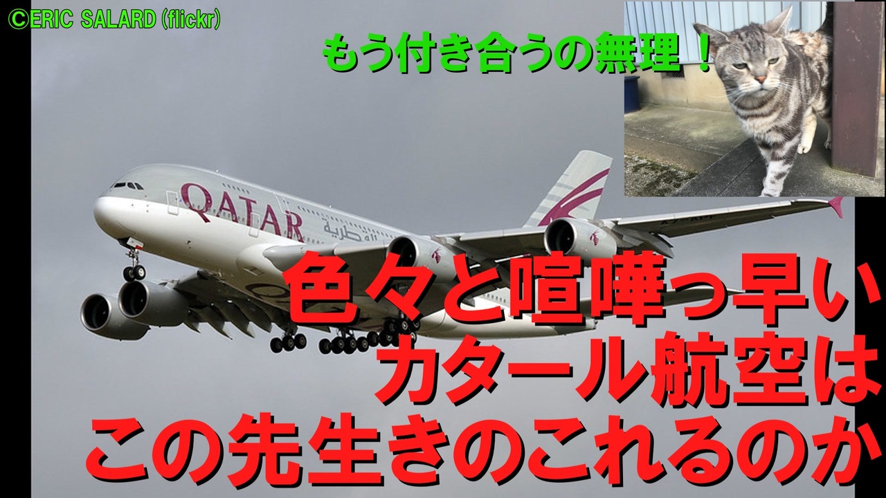 皆様、大変、大変長らくお待たせしました。<br>前回の新作から7ヶ月以上、ようやく戻ってこれました・・・<br>ただ、まだ資料的なものを集めている最中ですし、当面の投稿ペースは月一程度になると思います。完全復活まではまだ時間がかかりますが、今後ともよろしくお願いします。<br><br>後編のバトルの相手はサウジアラビアをはじめとした近隣諸国、そして世界最大級の航空機メーカー・エアバス。特にエアバスとのバトルは一時絶縁するほどの激しいものでした。なぜそんなことになってしまったのか、そしてこれらの場外乱闘の結末は・・・?<br><br>前編がまだの方はこちら→<a href="https://www.nicovideo.jp/watch/sm41615642" class="watch">sm41615642</a><br /><span style="color: #000000; font-size: 14px;">迷航空会社列伝</span><span style="color: #006699; font-size: 14px;"><a href="https://www.nicovideo.jp/mylist/24098760" target="_blank" rel="noopener">mylist/24098760</a></span><span style="color: #000000; font-size: 14px;"> 迷列車北陸編</span><span style="color: #006699; font-size: 14px;"><a href="https://www.nicovideo.jp/mylist/19084652" target="_blank" rel="noopener">mylist/19084652</a> </span><span style="color: #000000; font-size: 14px;">東海道交通戦争</span><span style="color: #006699; font-size: 14px;"><a href="https://www.nicovideo.jp/mylist/57958388" target="_blank" rel="noopener">mylist/57958388</a></span><span style="color: #000000; font-size: 14px;"> 交通機関の栄枯盛衰 </span><a href="https://www.nicovideo.jp/mylist/66898301" target="_blank" rel="noopener">mylist/66898301</a><br><span style="color: #000000; font-size: 14px;">ブログ→</span><span style="color: #006699; font-size: 14px;"><a href="http://www.meihokuriku-alps.com" target="_blank" rel="noopener nofollow">http://www.meihokuriku-alps.com</a></span><br>note→<a href="https://note.com/meihokuriku" target="_blank" rel="noopener nofollow">https://note.com/meihokuriku</a><br><span style="color: #000000; font-size: 14px;">使用BGM<br>甘茶の音楽工房様 </span><span style="color: #006699; font-size: 14px;"><a href="http://amachamusic.chagasi.com/index.html" target="_blank" rel="noopener nofollow">http://amachamusic.chagasi.com/index.html</a></span><br><span style="color: #000000; font-size: 14px;">魔王魂様 </span><span style="color: #006699; font-size: 14px;"><a href="https://maoudamashii.jokersounds.com/list/bgm5.html" target="_blank" rel="noopener nofollow">https://maoudamashii.jokersounds.com/list/bgm5.html</a></span>