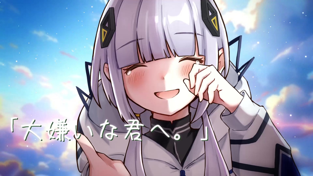 ボカコレ2023夏TOP100 参加作品です<br>「...ヒミツの感情をこの歌に込めて」<br><br>twitter @m9m9same<br><br>credits<br>Illustration by mm□ (@emem_amd)<br>Guitar by mum mum<br><br>歌詞です<br>作詞:m9m9<br><br> 「ねぇ、ちょっと待ってくれ」 最後に聴いた君の声<br>その前はなんだっけ いつかも思い出せない <br>「言葉じゃ伝わらない」 綺麗な響きだけれど<br> 言わなきゃわからない事だってあるんだ<br><br>でも気づいてた 気づかないフリをしてた<br>僕も同じだった だから振り向いて欲しくて<br>涙が溢れてしまう <br><br>あぁ 何ができた?何ができたんだろう? <br>言葉が出てこない<br>伝えなければいけないはずなのに <br>素直になれない僕ら <br>ねぇ 何ができた?何ができたのかな? <br>わからないままだ <br>今更だけど 言わせてくれないか <br>「大嫌いな君へ。」 <br><br>僕は怖かった ただ怯えていた <br>何者でもないことが解るのが <br>だから逃げていた 見られたくなかった <br>僕らはまたすれ違う Ah <br><br>振り向かずに聴いて欲しい 僕の姿は見せれない <br>涙が溢れてしまう <br><br>あぁ 何ができた?何ができたんだろう? <br>言葉が出てこない <br>伝えなければいけないはずなのに <br>素直になれない僕ら <br>ねぇ 何ができた?何ができたのかな? <br>わからないままだ <br>涙で滲んだ あまのじゃくの手紙 <br>「大嫌いな君へ。」 <br><br>…ヒミツの感情込めて