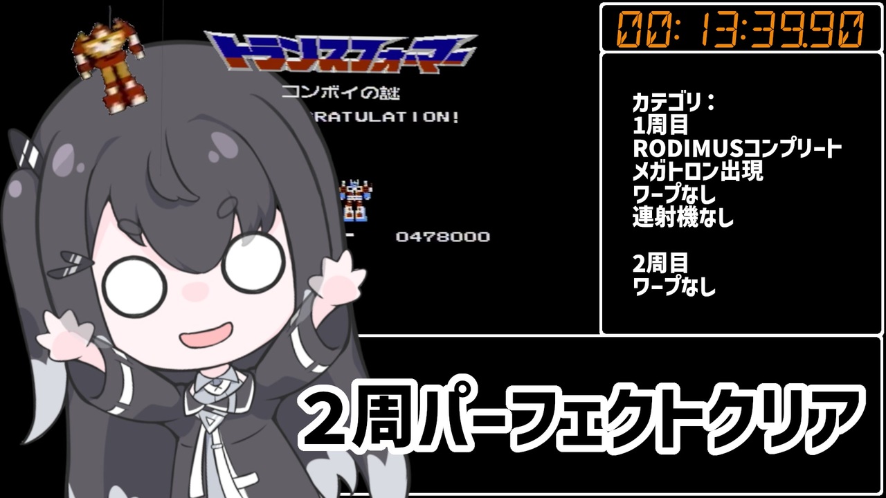 <span style="font-size: 24px;">投稿日に特に理由はありません。</span><br><span style="font-size: 18px;">なにかの映画の公開と被ってる気がしますが、気のせいです。</span><br>そう。言うなれば夏祭りです。<br>君がいた夏は遠い夢の中。<br>そういえば、夏祭りで花火ってマンガの中でしか見たことないです。<br>花火大会と夏祭りって別モノじゃないですかね?<br><br><br>カテゴリ:1周目RODIMUSコンプリート、メガトロン出現、ワープなし。<br> 2周目ワープなし。<br>連射機なし。<br><br>無編集動画:<br> <br>完全攻略動画:<a href="https://www.nicovideo.jp/watch/sm41549759" class="watch">sm41549759</a><br><br>怪現象集:<a href="https://www.nicovideo.jp/watch/sm41545650" class="watch">sm41545650</a><br><br>ボイスはCoeFontミリアルさんとアリアルさんを使用させて頂きました。<br>Voiced by <a href="https://CoeFont.cloud" target="_blank" rel="noopener nofollow">https://CoeFont.cloud</a><br><br>立ち絵:梓音しのん様<br>ちんまいアリミリ姉妹立ち絵<br><a href="https://seiga.nicovideo.jp/seiga/im11025058" target="_blank" rel="noopener nofollow">https://seiga.nicovideo.jp/seiga/im11025058</a><br><br><a target="_blank" href="https://qa.nicovideo.jp/faq/show/19424?site_domain=default" style="font-size: 13px;color: #657586; text-decoration: underline; line-height: 1.4">この動画は投稿者によって修正されました</a>