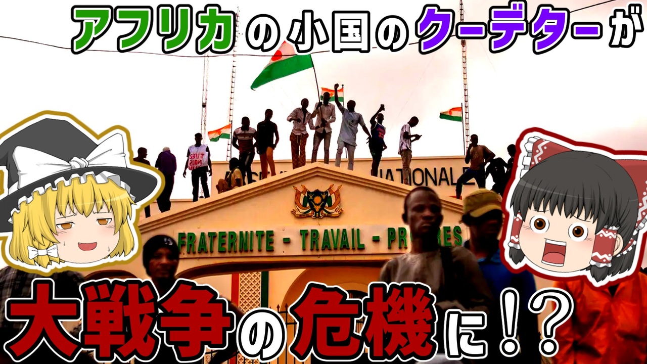 <strong>今回はニジェールで2023年7月26日に起きたクーデターを解説しました!</strong><br>ニジェールでどうしてクーデターが起きたのか、そしてそれがどうして西アフリカを巻き込む大戦争になりそうなのか...というお話。<br><br>各国の思惑が蠢く地獄の西アフリカ情勢、うーんひどい。<br><br><strong>【フランスの悪行シリーズ】<br>西アフリカで巻き起こる反フランス運動のお話→</strong><a href="https://www.nicovideo.jp/watch/sm42359970" target="_blank" rel="noopener nofollow">https://www.nicovideo.jp/watch/sm42359970</a><br><strong>フランスによる経済搾取とCFAフランのお話</strong>→<a href="https://www.nicovideo.jp/watch/sm41169329?ref=garage_share_other" target="_blank" rel="noopener nofollow">https://www.nicovideo.jp/watch/sm41169329?ref=garage_share_other</a><br><strong>実はフランスと死ぬほど仲が悪いアルジェリアのお話</strong>→<a href="https://www.nicovideo.jp/watch/sm41005570?ref=garage_share_other" target="_blank" rel="noopener nofollow">https://www.nicovideo.jp/watch/sm41005570?ref=garage_share_other</a><br><br>◆マイリスト→<a href="https://www.nicovideo.jp/mylist/73354161" target="_blank" rel="noopener nofollow">https://www.nicovideo.jp/mylist/73354161</a><br>◆アフリカの情報を上げてるうぷ主のTwitter→<a href="https://twitter.com/AfrikaanerMaris" target="_blank" rel="noopener nofollow">https://twitter.com/AfrikaanerMaris</a><br><br>あといいねくれるとうれしいです(いいねを押すとお礼メッセージで次の動画の予告が見れます!なお80%で外れる模様)<br>あといっぱいコメントしてくれるとうぷ主が喜びます。<br>