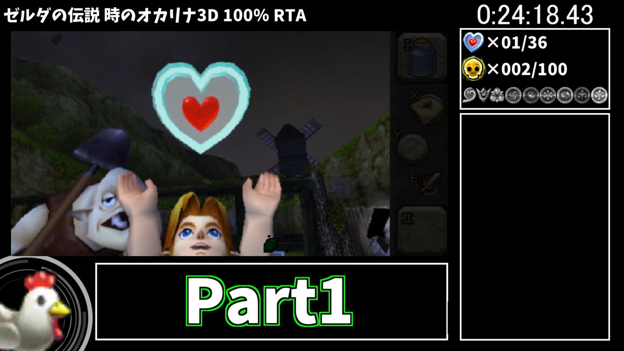 世界6位、日本1位(2023/8/3)<br><br>~100%のルール (Speedrun.comより意訳)~<br>1.以下を正規の方法で集める。<br>・ハート20個 (ハートの器8個+正規のハートのかけら36個)<br>・黄金のスタルチュラ100匹 (増殖等は禁止)<br>・オカリナの歌 (カカシの歌は含まない)<br>・魔力最大<br>・防御2倍<br>・ゲルドの会員証<br>・ひびき石<br>・巨人のサイフ<br>・アイテム欄のアイテムすべて<br>・そうび欄のアイテムすべて<br>・精霊石とメダルすべて<br>2.1を達成したうえでエンディングを見る。<br>3.ダンジョンマップ、コンパス、ボス部屋のカギは<br> 条件に含まれない。<br>4.ガノン城の結界解除はしなくてもよい。<br>5.ガノンドロフ、ガノンを倒す必要はない。<br>6.リンクの家の牛(障害物レースの賞品)は含まれない。<br>7.魔法のマメは10個すべて買う必要も植える必要もない。<br>8.空きビンの増殖は許可されているが、<br> 増殖ビンは元に戻し、4つ全て正規の方法で<br> 入手する必要がある。<br>9.カットシーン中に入手するアイテムは、<br> カットシーンを開始させればOK。<br> (炎のボレロやメダルなど)<br>10.アイテムはすべて正規の方法で入手しなければならない。<br>11.アップグレード、トレードアイテムに関しては、<br> 最終的に一番上のものを正規に入手すれば<br> 途中のものは入手しなくてもよい。<br> (銀のウロコ、大きな矢立て、密猟者のノコギリなど)<br><br>レイアウト<br><a href="https://commons.nicovideo.jp/material/nc180937?ref=pc_watch_contentstree_parent" target="_blank" rel="noopener nofollow">https://commons.nicovideo.jp/material/nc180937?ref=pc_watch_contentstree_parent</a><br />YouTubeでも活動しています。<br><a href="https://www.youtube.com/@swan.46" target="_blank" rel="noopener nofollow">https://www.youtube.com/@swan.46</a>