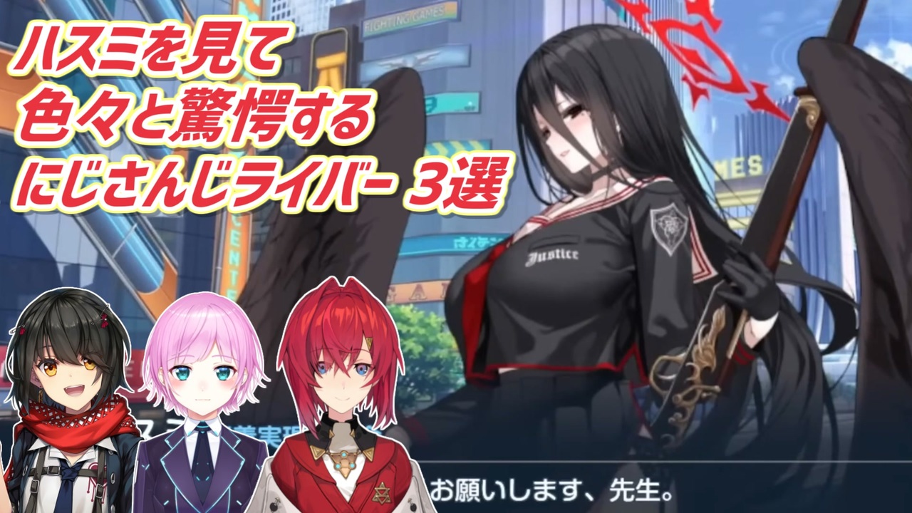 あまりハッキリとは言えないけれども…すんごい!<br><br>本家参考動画<br>・ましろ爻<br>ブルーアーカイブ - たくさんのバニーおっ〇いに囲まれたい 初見プレイ<br><a href="https://youtu.be/ESPqNV_PpWw" target="_blank" rel="noopener nofollow">https://youtu.be/ESPqNV_PpWw</a><br>・夕陽リリ<br>【ブルーアーカイブ】#1 いざゆかん!ブルーアーカイブ【夕陽リリ/にじさんじ】<br><a href="https://youtu.be/lF_easdt22s" target="_blank" rel="noopener nofollow">https://youtu.be/lF_easdt22s</a><br>・アンジュ・カトリーナ<br>初見ブルアカ!!正直、めっちゃ気になってました…□【ブル―アーカイブ│にじさんじ/アンジュ・カトリーナ】<br><a href="https://youtu.be/SdN6g73V9q8" target="_blank" rel="noopener nofollow">https://youtu.be/SdN6g73V9q8</a><br><br>参考元チャンネル&Twitter<br>・ましろ爻<br><a href="https://www.youtube.com/@MashiroMeme" target="_blank" rel="noopener nofollow">https://www.youtube.com/@MashiroMeme</a><br><a href="https://twitter.com/mashiro2434" target="_blank" rel="noopener nofollow">https://twitter.com/mashiro2434</a><br>・夕陽リリ<br><a href="https://www.youtube.com/@YuhiRiri" target="_blank" rel="noopener nofollow">https://www.youtube.com/@YuhiRiri</a><br><a href="https://twitter.com/Yuuhi_Riri" target="_blank" rel="noopener nofollow">https://twitter.com/Yuuhi_Riri</a><br>・アンジュ・カトリーナ<br><a href="https://www.youtube.com/@AngeKatrina" target="_blank" rel="noopener nofollow">https://www.youtube.com/@AngeKatrina</a><br><a href="https://twitter.com/ange_katrina_" target="_blank" rel="noopener nofollow">https://twitter.com/ange_katrina_</a><br><br>ニコニコのダイコンマンリスト<br>「バーチャルYouTuberシリーズ」↓<br><a href="https://www.nicovideo.jp/mylist/62551838" target="_blank" rel="noopener">mylist/62551838</a><br>「バーチャルYouTuberシリーズ2」↓<br><a href="https://www.nicovideo.jp/mylist/67858437" target="_blank" rel="noopener">mylist/67858437</a><br>「バーチャルYouTuberシリーズ3」↓<br><a href="https://www.nicovideo.jp/mylist/71340675" target="_blank" rel="noopener">mylist/71340675</a><br>「バーチャルYouTuberシリーズ4」↓<br><a href="https://www.nicovideo.jp/mylist/73995264" target="_blank" rel="noopener">mylist/73995264</a><br><br>ダイコンマンのTwitter<br><a href="https://twitter.com/Daikon_Man_V" target="_blank" rel="noopener nofollow">https://twitter.com/Daikon_Man_V</a>