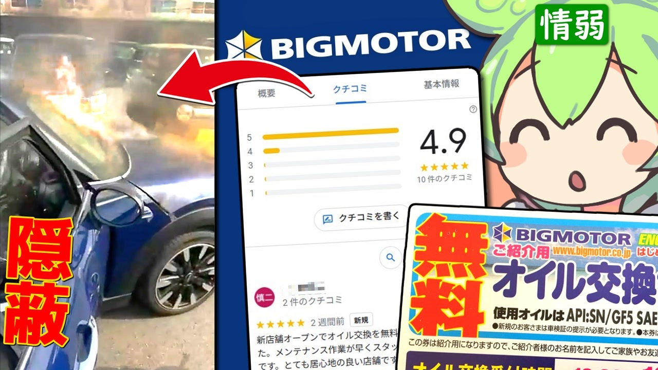 この動画は個々の事例を組み合わせて作っていることをご留意ください。<br>見たいテーマがあったらコメントください('ω')ノ<br><br>▼ビッグモーター・シリーズ▼<br>・顧客編:イマココ<br>・就職編:<a href="https://www.nicovideo.jp/watch/sm42607097" class="watch">sm42607097</a><br>・炎上後:騒動が落ち着いたら<br><br>▼参考▼<br><a href="https://www3.nhk.or.jp/news/html/20230714/k10014129291000.html" target="_blank" rel="noopener nofollow">https://www3.nhk.or.jp/news/html/20230714/k10014129291000.html</a><br><a href="https://www.sankei.com/article/20230717-ZZBPKGBOGVMJJCBIIU5FKG4DOQ/" target="_blank" rel="noopener nofollow">https://www.sankei.com/article/20230717-ZZBPKGBOGVMJJCBIIU5FKG4DOQ/</a><br><a href="https://www.khb-tv.co.jp/news/14960891" target="_blank" rel="noopener nofollow">https://www.khb-tv.co.jp/news/14960891</a><br><a href="https://www.asahi.com/articles/ASR7T6FF6R7TULFA02K.html" target="_blank" rel="noopener nofollow">https://www.asahi.com/articles/ASR7T6FF6R7TULFA02K.html</a><br><a href="https://friday.kodansha.co.jp/article/311092" target="_blank" rel="noopener nofollow">https://friday.kodansha.co.jp/article/311092</a><br><br>▼稀につぶやくツイッター▼<br><a href="https://twitter.com/DaMaMe0512" target="_blank" rel="noopener nofollow">https://twitter.com/DaMaMe0512</a>