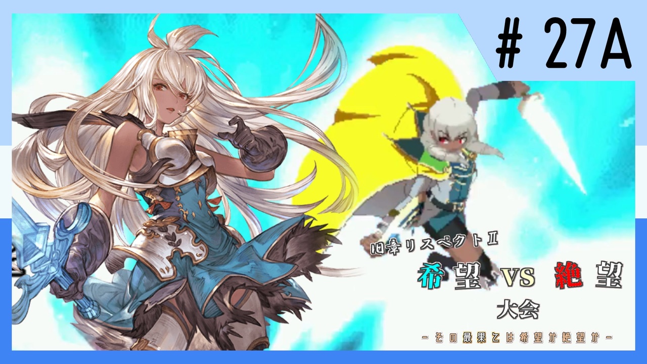 <span style="color: #ff0000; font-size: 18px;"><strong>天敵 匹敵 好敵手</strong></span><br><br>勝敗が大した問題じゃなくなる、そういう戦いもある。<br>…そうなる要因はそれぞれにあるとして。<br><br><span style="font-size: 10px;">以下コメ返<br>◇夏ですねぇ(デフォスパ)<br>→汚ぇヒットエフェクトだ…<br>◇わーお、ほんとにこいつを削り切るとは(屍小町)<br>→無敵は少なめなので、7Pだと柔らかすぎるとかいう異常事態でしたが、<br> 8Pをここまでサクサク削り切る子もなかなかいないですね…。<br>◇すげえ、あのにくすべおばさんが全く歯が立たないとか<br>→実は1Rでも落とすと、覚醒後の技で観鈴のRNOが暴発して護身→隔離でぶっ飛ばされる、<br> 通常形態でも、とある技の即死は刺さるため、さっさと羽連打で削り切るのが最適解です。<br> それでも少なくとも勝率4割はいくんじゃないでしょうか?<br>◇復活ランセレ<br>→狙おうとしてもこんなん出せません…脱落者40名以上からあのペアをピックするのは相当やってますわ。<br> というかランセレ操作なるべく疑われないために同時決定したんだけどなぁ…。</span><br><br>いいね欄は次回予告(試合のネタバレではない)<br><br>何か連絡あればこちらのアカウントへ<br>Twitter → <a href="https://twitter.com/YaoYorozu_8mi" target="_blank" rel="noopener nofollow">https://twitter.com/YaoYorozu_8mi</a><br>コミュニティとユーザーページ(普段は全然別ジャンルに生きてます)<br>→ co3843553/<a href="https://www.nicovideo.jp/user/47822839" target="_blank" rel="noopener">user/47822839</a><br><br>大会メンバー詳細<br><a href="https://yaoyorozu-bomb-800.hatenablog.com/entry/2023/06/09/174752" target="_blank" rel="noopener nofollow">https://yaoyorozu-bomb-800.hatenablog.com/entry/2023/06/09/174752</a><br><br>前大会(出会いきぼぜつ)→ <a href="https://www.nicovideo.jp/watch/sm41406299" class="watch">sm41406299</a><br>OP→ <a href="https://www.nicovideo.jp/watch/sm42328719" class="watch">sm42328719</a><br>次 → <a href="https://www.nicovideo.jp/watch/sm42604010" class="watch">sm42604010</a>