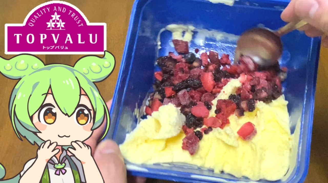 バニラ味は2Lもあるので、味変して楽しむのもいいんじゃないでしょうか<br><br><br>【参考】<br>バニラアイスクリーム(トップバリュ)<br><a href="https://www.topvalu.net/items/detail/4549741994156/" target="_blank" rel="noopener nofollow">https://www.topvalu.net/items/detail/4549741994156/</a><br>4種のベリーミックス ボリュームパック(トップバリュ)<br><a href="https://www.topvalu.net/items/detail/4549414004465/" target="_blank" rel="noopener nofollow">https://www.topvalu.net/items/detail/4549414004465/</a><br>さくさくとした食感コーンフレークシュガー(トップバリュ)<br><a href="https://www.topvalu.net/items/detail/4549741030090/" target="_blank" rel="noopener nofollow">https://www.topvalu.net/items/detail/4549741030090/</a><br><br><br><br>【使用した素材】(※敬称略)<br>(合成音声)VOICEVOX/ずんだもん/四国めたん/<br><a href="https://voicevox.hiroshiba.jp/" target="_blank" rel="noopener nofollow">https://voicevox.hiroshiba.jp/</a><br>(立ち絵)坂本アヒル<br><a href="https://seiga.nicovideo.jp/seiga/im10788496" target="_blank" rel="noopener">im10788496</a>/<a href="https://seiga.nicovideo.jp/seiga/im10791276" target="_blank" rel="noopener">im10791276</a><br>(楽曲)甘茶の音楽工房/「楽しい麦畑」<br><a href="https://amachamusic.chagasi.com/" target="_blank" rel="noopener nofollow">https://amachamusic.chagasi.com/</a><br><br><br>【関連動画】<br>トップバリュ(赤)の「バニラアイスクリーム」<br><a href="https://www.youtube.com/watch?v=c_iLzRBc8Oc&t=1s" target="_blank" rel="noopener nofollow">https://www.youtube.com/watch?v=c_iLzRBc8Oc&t=1s</a><br><br><br>#ずんだもん <br>#四国めたん<br>#トップバリュ<br>#トプバ<br>#アイスクリーム
