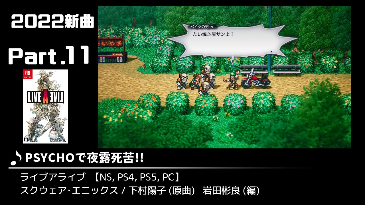 2022年の新曲ランキング Part11は129~107位の23曲を収録。<br><br><br><span style="color: #00afcc; font-size: 16px;"><strong>Part11のゲーム・サントラ購入先まとめはこちら!</strong></span><br><a href="https://kara-age.blogspot.com/2023/08/part11-2022.html" target="_blank" rel="noopener nofollow">https://kara-age.blogspot.com/2023/08/part11-2022.html</a><br><br><br><br><a href="https://www.nicovideo.jp/watch/sm42546381" class="watch">sm42546381</a> ←前【<a href="https://www.nicovideo.jp/mylist/75213723" target="_blank" rel="noopener">mylist/75213723</a>】次→ <a href="https://www.nicovideo.jp/watch/sm42645809" class="watch">sm42645809</a><br><br><br>①<a href="#" class="seekTime" data-seekTime="00:18" onclick="seekNicoPlayer('#00:18'); return false;">#00:18</a> ②<a href="#" class="seekTime" data-seekTime="02:16" onclick="seekNicoPlayer('#02:16'); return false;">#02:16</a> ③<a href="#" class="seekTime" data-seekTime="07:24" onclick="seekNicoPlayer('#07:24'); return false;">#07:24</a> ④<a href="#" class="seekTime" data-seekTime="10:40" onclick="seekNicoPlayer('#10:40'); return false;">#10:40</a> ⑤<a href="#" class="seekTime" data-seekTime="13:39" onclick="seekNicoPlayer('#13:39'); return false;">#13:39</a> ⑥<a href="#" class="seekTime" data-seekTime="17:04" onclick="seekNicoPlayer('#17:04'); return false;">#17:04</a> ⑦<a href="#" class="seekTime" data-seekTime="20:34" onclick="seekNicoPlayer('#20:34'); return false;">#20:34</a> ⑧<a href="#" class="seekTime" data-seekTime="23:22" onclick="seekNicoPlayer('#23:22'); return false;">#23:22</a> ⑨<a href="#" class="seekTime" data-seekTime="25:55" onclick="seekNicoPlayer('#25:55'); return false;">#25:55</a> ⑩<a href="#" class="seekTime" data-seekTime="27:58" onclick="seekNicoPlayer('#27:58'); return false;">#27:58</a> ⑪<a href="#" class="seekTime" data-seekTime="30:43" onclick="seekNicoPlayer('#30:43'); return false;">#30:43</a> ⑫<a href="#" class="seekTime" data-seekTime="33:53" onclick="seekNicoPlayer('#33:53'); return false;">#33:53</a> ⑬<a href="#" class="seekTime" data-seekTime="38:30" onclick="seekNicoPlayer('#38:30'); return false;">#38:30</a> ⑭<a href="#" class="seekTime" data-seekTime="41:33" onclick="seekNicoPlayer('#41:33'); return false;">#41:33</a> ⑮<a href="#" class="seekTime" data-seekTime="44:51" onclick="seekNicoPlayer('#44:51'); return false;">#44:51</a> ⑯<a href="#" class="seekTime" data-seekTime="48:32" onclick="seekNicoPlayer('#48:32'); return false;">#48:32</a> ⑰<a href="#" class="seekTime" data-seekTime="51:05" onclick="seekNicoPlayer('#51:05'); return false;">#51:05</a> ⑱<a href="#" class="seekTime" data-seekTime="54:05" onclick="seekNicoPlayer('#54:05'); return false;">#54:05</a> ⑲<a href="#" class="seekTime" data-seekTime="56:06" onclick="seekNicoPlayer('#56:06'); return false;">#56:06</a> ⑳<a href="#" class="seekTime" data-seekTime="58:28" onclick="seekNicoPlayer('#58:28'); return false;">#58:28</a> ㉑<a href="#" class="seekTime" data-seekTime="61:23" onclick="seekNicoPlayer('#61:23'); return false;">#61:23</a> ㉒<a href="#" class="seekTime" data-seekTime="66:26" onclick="seekNicoPlayer('#66:26'); return false;">#66:26</a> ㉓<a href="#" class="seekTime" data-seekTime="71:26" onclick="seekNicoPlayer('#71:26'); return false;">#71:26</a>