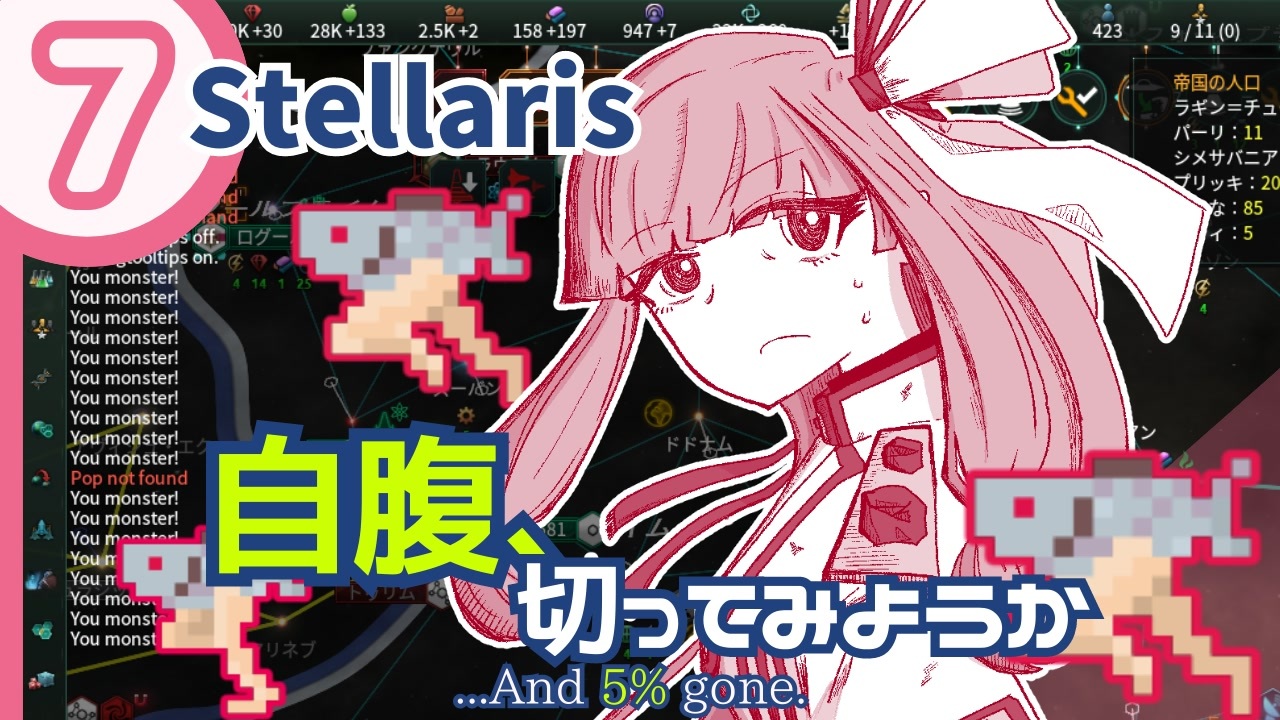 <span style="color: #0b5394; font-size: 24px;"><strong>この動画はフィクションです!いかなる主張もするものではありません。</strong></span><br>ついにこの時が来てしまった。これは全てサイドランのせいです。<br><br>私事ですが、格ゲーをしていたら喉を壊し、そのまま風邪をひいて3連休が吹き飛んだので皆さんは気を付けてください。<br><br>前:<a href="https://www.nicovideo.jp/watch/sm42546146" class="watch">sm42546146</a> 次:<a href="https://www.nicovideo.jp/watch/sm42676352" class="watch">sm42676352</a><br>part1:<a href="https://www.nicovideo.jp/watch/sm42221138" class="watch">sm42221138</a><br><br><span style="color: #3d85c6;">「大波」についての簡単なルール説明(進行に応じて調整)<br>・30-40年に一度、第二種族であるさかなの食欲が爆発する<br>・これを大波(ビッグウェーブ)と呼ぶ<br>・この場合、さかなと同じくらいの数のPOPが食料として必要である<br>・POPは自国民でも異星人でも可<br>・王国はPOPを外部から調達するためにさかなの我慢の限界が近づくと遠征に出向く<br>・さかなは王国の有史以来の友であり、繁栄の基礎である</span><br><br><br><span style="color: #e69138; font-size: 18px;"><strong>↓オリジナルフリー素材サイト<br><a href="https://freepixelarts-undots.com" target="_blank" rel="noopener nofollow">https://freepixelarts-undots.com</a><br>↓サポーター募集中です<br><a href="https://www.nicovideo.jp/user/122141648" target="_blank" rel="noopener nofollow">https://www.nicovideo.jp/user/122141648</a></strong></span><br><br>※視聴者さんへ 投稿者に関係のないところで投稿者の名前やネタを出すのはご遠慮ください。<br>動画内のイラストなどはTwitter、ニコニコ静画へ<br><br>いろいろなリンク<br>Twitter:<a href="https://twitter.com/Kiyomi_syab" target="_blank" rel="noopener nofollow">https://twitter.com/Kiyomi_syab</a><br>ニコニコ:<a href="https://www.nicovideo.jp/user/122141648" target="_blank" rel="noopener nofollow">https://www.nicovideo.jp/user/122141648</a><br>YouTube:<a href="https://www.youtube.com/channel/UCZETDuSFN1YhdfGosk_Vopg" target="_blank" rel="noopener nofollow">https://www.youtube.com/channel/UCZETDuSFN1YhdfGosk_Vopg</a><br><br>使用素材元<br>voicevox:四国めたん、ずんだもん、青山龍星<br>BGM:魔王魂/BGMer/甘茶の音楽工房<br>使わせていただいている計算サイト:<a href="https://www.calc-site.com/" target="_blank" rel="noopener nofollow">https://www.calc-site.com/</a><br><br>使用プラグイン元<br><a href="https://www.nicovideo.jp/watch/sm39679253" target="_blank" rel="noopener nofollow">https://www.nicovideo.jp/watch/sm39679253</a><br>