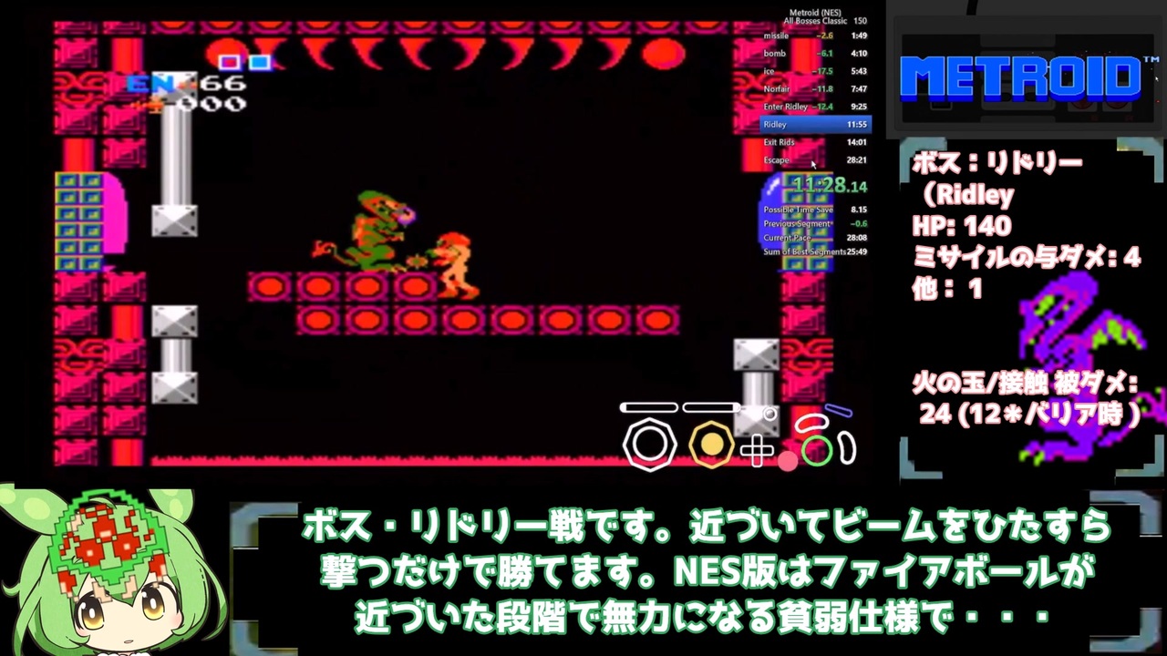 初代メトロイド(ファミコンディスクシステム版)37周年おめでとう!ということで、初代メトロイドのRTA解説動画です。NES版のRTAですけれど、ファミコンディスクシステム版との違いも説明出来たらいいなあと思います。<br><br>*普通にメトロイドプライム走者なのでプライム版をたまたま使ってるだけで、今だったらニンテンドースイッチオンライン版が練習も本番も圧倒的に環境良いと思います。<br>今ならニンテンドースイッチオンライン、14日間無料体験チケット配布中!(8/20まで)<br><br><a href="https://topics.nintendo.co.jp/article/04e9df34-0799-4cc3-b5d0-53807b3eea7a" target="_blank" rel="noopener nofollow">https://topics.nintendo.co.jp/article/04e9df34-0799-4cc3-b5d0-53807b3eea7a</a><br><br>カテゴリルール:ワープ禁止 主要バグ禁止 ゲームオーバー禁止 ボス両方撃破(クレイド・リドリー)<br><a href="https://www.speedrun.com/metroid_nes?h=All_Bosses_Classic&x=wk60znok" target="_blank" rel="noopener nofollow">https://www.speedrun.com/metroid_nes?h=All_Bosses_Classic&x=wk60znok</a><br><br>*ファミコンディスクシステム版リーダーボードはこっち<br><a href="https://www.speedrun.com/metroid_category_extensions#FDS_Full_Game" target="_blank" rel="noopener nofollow">https://www.speedrun.com/metroid_category_extensions#FDS_Full_Game</a><br><br>VOICEVOX:ずんだもん