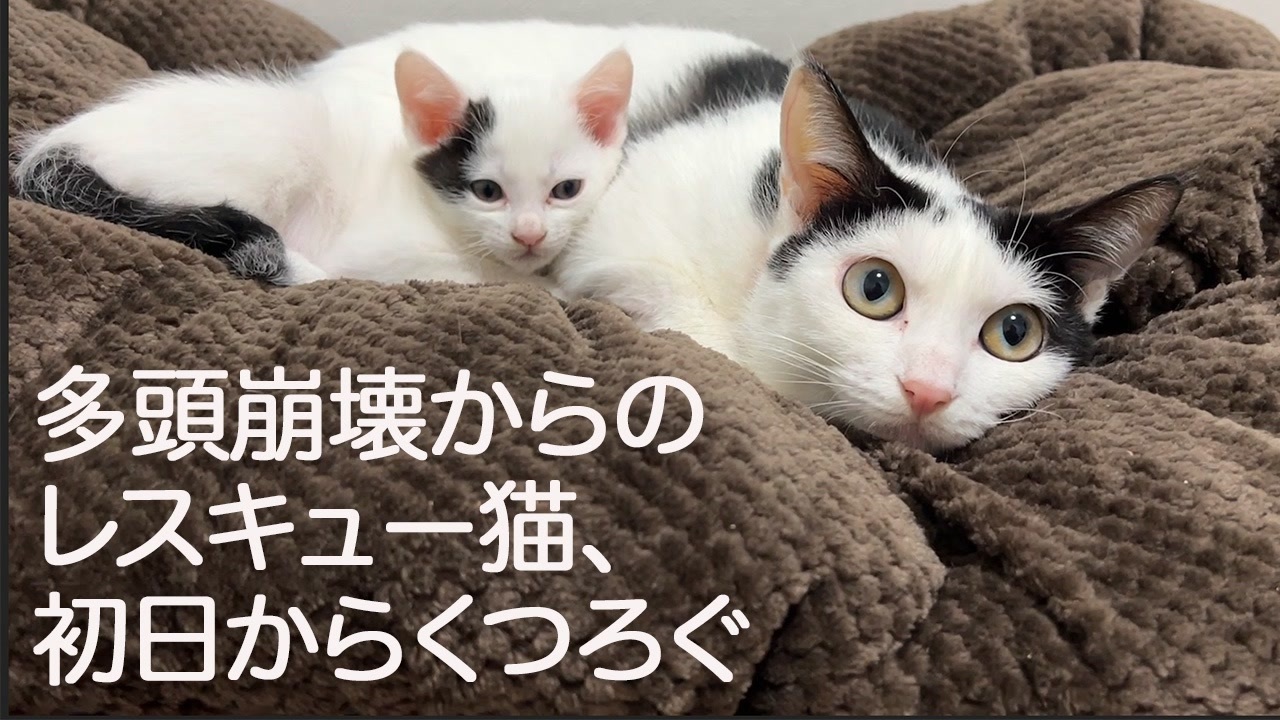 多頭崩壊からの預かり猫たち、初日からくつろぐ 6:18