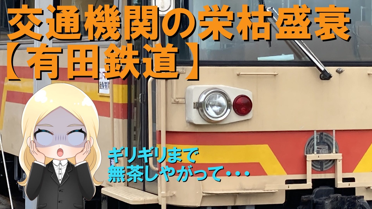 こちらのシリーズもまたもやお久しぶりになってしまいました。<br><br>・・・色々あったんですよ、色々と。<br><br>今回ご紹介するのは和歌山県にあった有田鉄道。みかんを運ぶために作られた鉄道でしたが、ご多分に漏れずモータリゼーションで貨物と旅客を失い、最後は鉄道としてありえない規模にまで縮小してしまいました。なぜあり得ないことになってしまったのか、なぜそれでも鉄道を辞めなかったのか。詳しくは本編で。<br /><span style="color: #000000; font-size: 14px;">迷航空会社列伝</span><span style="color: #006699; font-size: 14px;"><a href="https://www.nicovideo.jp/mylist/24098760" target="_blank" rel="noopener">mylist/24098760</a></span><span style="color: #000000; font-size: 14px;"> 迷列車北陸編</span><span style="color: #006699; font-size: 14px;"><a href="https://www.nicovideo.jp/mylist/19084652" target="_blank" rel="noopener">mylist/19084652</a> </span><span style="color: #000000; font-size: 14px;">東海道交通戦争</span><span style="color: #006699; font-size: 14px;"><a href="https://www.nicovideo.jp/mylist/57958388" target="_blank" rel="noopener">mylist/57958388</a></span><span style="color: #000000; font-size: 14px;"> 交通機関の栄枯盛衰 </span><a href="https://www.nicovideo.jp/mylist/66898301" target="_blank" rel="noopener">mylist/66898301</a><br><span style="color: #000000; font-size: 14px;">ブログ→</span><span style="color: #006699; font-size: 14px;"><a href="http://www.meihokuriku-alps.com" target="_blank" rel="noopener nofollow">http://www.meihokuriku-alps.com</a></span><br>note→<a href="https://note.com/meihokuriku" target="_blank" rel="noopener nofollow">https://note.com/meihokuriku</a><br><span style="color: #000000; font-size: 14px;">使用BGM<br>甘茶の音楽工房様 </span><span style="color: #006699; font-size: 14px;"><a href="http://amachamusic.chagasi.com/index.html" target="_blank" rel="noopener nofollow">http://amachamusic.chagasi.com/index.html</a></span><br><span style="color: #000000; font-size: 14px;">魔王魂様 </span><span style="color: #006699; font-size: 14px;"><a href="https://maoudamashii.jokersounds.com/list/bgm5.html" target="_blank" rel="noopener nofollow">https://maoudamashii.jokersounds.com/list/bgm5.html</a></span>