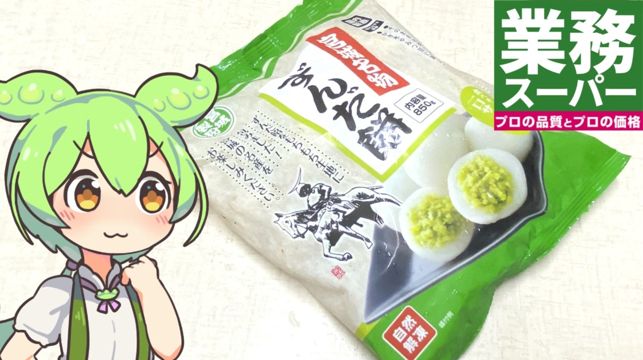 業務スーパーにずんだもちが売ってました。<br><br><br>【参考】<br>ずんだ餅(業務スーパー)<br><a href="https://www.gyomusuper.jp/product/detail.php?go_id=7132" target="_blank" rel="noopener nofollow">https://www.gyomusuper.jp/product/detail.php?go_id=7132</a><br>業務スーパー×神戸物産総力祭(業務スーパー)<br><a href="https://www.gyomusuper.jp/bargain/index.php" target="_blank" rel="noopener nofollow">https://www.gyomusuper.jp/bargain/index.php</a><br>宮城製粉株式会社<br><a href="http://www.miyagiseifun.jp/" target="_blank" rel="noopener nofollow">http://www.miyagiseifun.jp/</a><br>宮城製粉株式会社(みやぎで働く!)<br><a href="https://www.miyagi-hataraku.jp/company/miyagiseihun/" target="_blank" rel="noopener nofollow">https://www.miyagi-hataraku.jp/company/miyagiseihun/</a><br>宮城製粉「白玉団子、ほか5商品」 - 返金/回収(消費者庁リコール情報サイト)<br><a href="https://www.recall.caa.go.jp/result/detail.php?rcl=00000030719&screenkbn=06" target="_blank" rel="noopener nofollow">https://www.recall.caa.go.jp/result/detail.php?rcl=00000030719&screenkbn=06</a><br><br><br><br>【使用した素材】(※敬称略)<br>(合成音声)VOICEVOX/ずんだもん/四国めたん/<br><a href="https://voicevox.hiroshiba.jp/" target="_blank" rel="noopener nofollow">https://voicevox.hiroshiba.jp/</a><br>(立ち絵)坂本アヒル<br><a href="https://seiga.nicovideo.jp/seiga/im10788496" target="_blank" rel="noopener">im10788496</a>/<a href="https://seiga.nicovideo.jp/seiga/im10791276" target="_blank" rel="noopener">im10791276</a><br>(楽曲)甘茶の音楽工房/「楽しい麦畑」「お城の舞踏会」<br><a href="https://amachamusic.chagasi.com/" target="_blank" rel="noopener nofollow">https://amachamusic.chagasi.com/</a>
