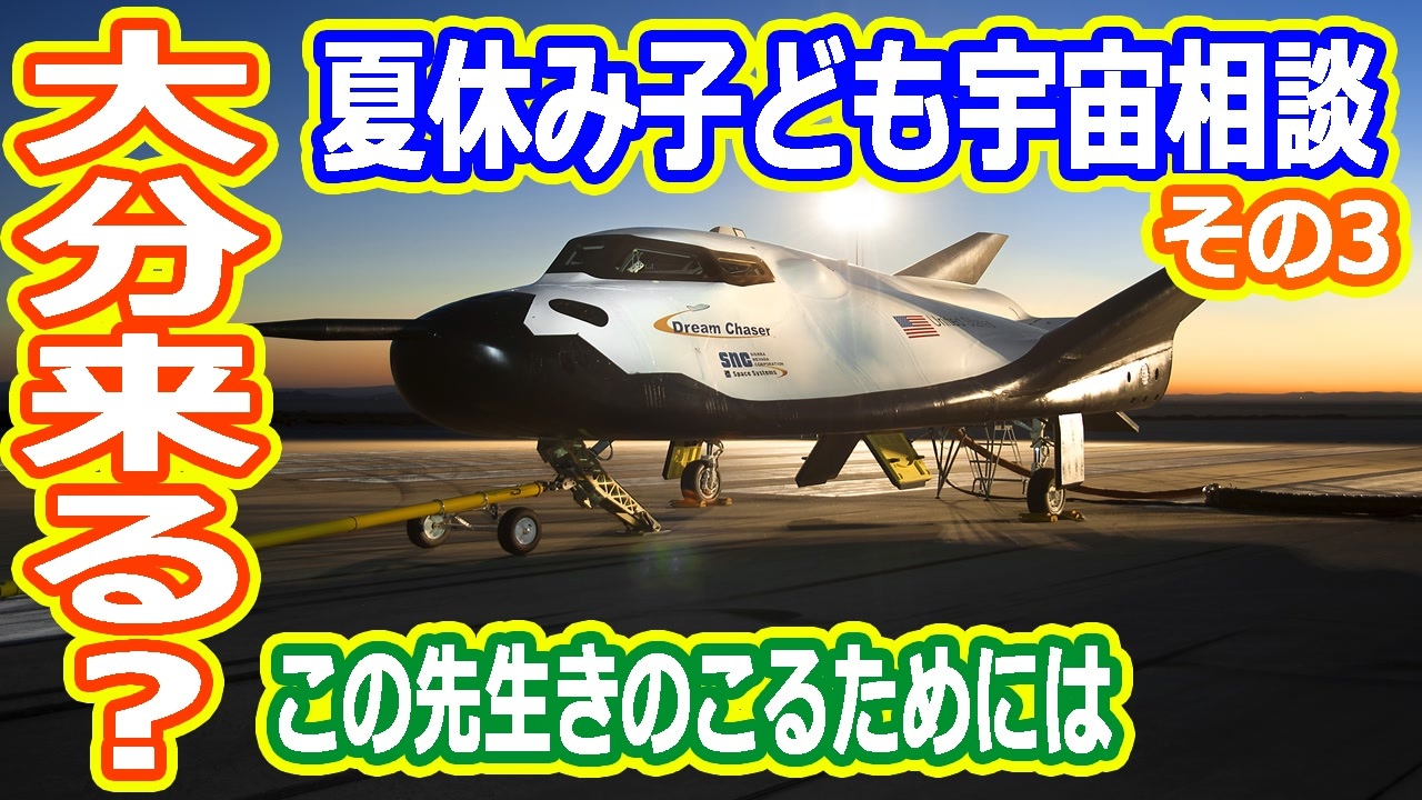 今年もやります子ども宇宙相談<br>今回も宇宙キモヲタが期待に応えていきます!<br>・一番費用が安かったロケットは、どのロケットは?<br>・ドリームチェイサーは本当に大分に来るの?<br>以上の2本をお送りします<br><br>【欲しいものリスト】<br><a href="https://www.amazon.jp/hz/wishlist/ls/30HG3KS6HM6G?ref_=wl_share" target="_blank" rel="noopener nofollow">https://www.amazon.jp/hz/wishlist/ls/30HG3KS6HM6G?ref_=wl_share</a><br>【いちおし宇宙系】<br>・アマゾンリンク<br><a href="https://amzn.to/2S8xjpH" target="_blank" rel="noopener nofollow">https://amzn.to/2S8xjpH</a><br>・国立天文台望遠鏡キット<br><a href="https://www.vixen-m.co.jp/item/71042_3.html" target="_blank" rel="noopener nofollow">https://www.vixen-m.co.jp/item/71042_3.html</a><br>・スコープテック ラプトル60 天体望遠鏡セット<br><a href="https://amzn.to/449toYG" target="_blank" rel="noopener nofollow">https://amzn.to/449toYG</a><br>・スコープテック アトラス80 天体望遠鏡セット<br><a href="https://amzn.to/3OnAbrK" target="_blank" rel="noopener nofollow">https://amzn.to/3OnAbrK</a><br>・ナシカ光学10倍双眼鏡10×21 UC-MC<br><a href="https://amzn.to/3OvB4P9" target="_blank" rel="noopener nofollow">https://amzn.to/3OvB4P9</a><br>・ニコン 双眼鏡 PROSTAFF P7 8x42 <br><a href="https://amzn.to/3QzzvCA" target="_blank" rel="noopener nofollow">https://amzn.to/3QzzvCA</a><br>・ビジュアル天文学史 : 古代から現代まで101の発明発見と挑戦<br><a href="https://amzn.to/446rqZh" target="_blank" rel="noopener nofollow">https://amzn.to/446rqZh</a><br><br>公平性や中立性を考えてアフィリエイトリンクは控えていましたが、得た収益を次のレビュー書籍や機材代にするために始めました<br>よろしくお願いします<br><br>へえ~と思ったらチャンネル登録と高評価をお願います<br>ツイッターでは、たまに宇宙ネタをつぶやいています<br><br>◆チャンネル登録はこちら<br><a href="http://www.youtube.com/channel/UChOv-TZWg3X4MDjFUF8CfQg?sub_confirmation=1" target="_blank" rel="noopener nofollow">http://www.youtube.com/channel/UChOv-TZWg3X4MDjFUF8CfQg?sub_confirmation=1</a><br>◆サブチャンネル<br><a href="http://www.youtube.com/channel/UCpQEOLtOpmXUwslvgi93yQw?sub_confirmation=1" target="_blank" rel="noopener nofollow">http://www.youtube.com/channel/UCpQEOLtOpmXUwslvgi93yQw?sub_confirmation=1</a><br>◆twitterはこちら<br><a href="https://twitter.com/skysanpei" target="_blank" rel="noopener nofollow">https://twitter.com/skysanpei</a>