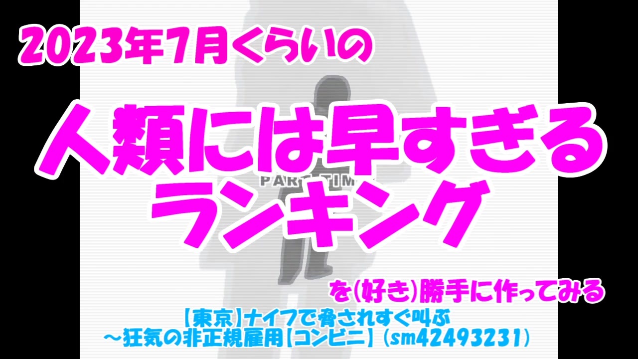 | 番号 | 総合順位 | ポイント | ジャンル順位 | カテゴリ | 再生順位 | 再生数 | コメント順位 | コメント数 | マイリスト順位 | マイリスト数 | いいね順位 | いいね数 |