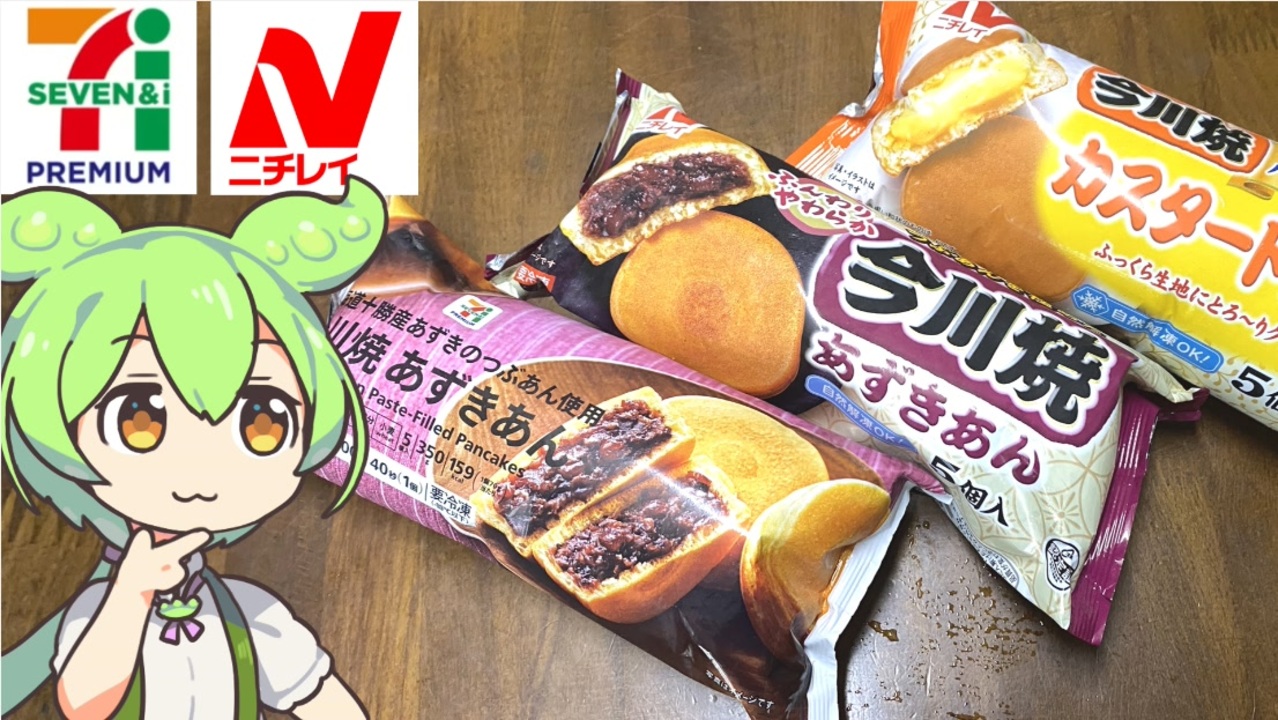 本家、ニチレイの今川焼がプライベートブランド(セブンプレミアムやトップバリュ)と<br>どれだけ違うのか気になったので食べ比べてみました。<br><br><br>【参考】<br>7プレミアム 今川焼あずきあん(セブンプレミアム)<br><a href="https://www.sej.co.jp/products/a/item/410307/" target="_blank" rel="noopener nofollow">https://www.sej.co.jp/products/a/item/410307/</a><br>今川焼(あずきあん)(ニチレイフーズ)<br><a href="https://www.nichireifoods.co.jp/product/detail/sho_id20/" target="_blank" rel="noopener nofollow">https://www.nichireifoods.co.jp/product/detail/sho_id20/</a><br>今川焼(カスタードクリーム)(ニチレイフーズ)<br><a href="https://www.nichireifoods.co.jp/product/detail/sho_id21/" target="_blank" rel="noopener nofollow">https://www.nichireifoods.co.jp/product/detail/sho_id21/</a><br>今川焼あずきあん(トップバリュ)<br><a href="https://www.topvalu.net/items/detail/4549414317183/" target="_blank" rel="noopener nofollow">https://www.topvalu.net/items/detail/4549414317183/</a><br>今川焼カスタードクリーム(トップバリュ)<br><a href="https://www.topvalu.net/items/detail/4549414317190/" target="_blank" rel="noopener nofollow">https://www.topvalu.net/items/detail/4549414317190/</a><br>ニチレイフーズ 2023年秋季新商品・リニューアル商品のご案内 全58品がラインアップ(ニチレイフーズ)<br><a href="https://www.nichireifoods.co.jp/news/2023/info_id37397/" target="_blank" rel="noopener nofollow">https://www.nichireifoods.co.jp/news/2023/info_id37397/</a><br>スーパーマーケットバロー<br><a href="https://valor.jp/" target="_blank" rel="noopener nofollow">https://valor.jp/</a><br><br><br><br>【使用した素材】(※敬称略)<br>(合成音声)VOICEVOX/ずんだもん/四国めたん/<br><a href="https://voicevox.hiroshiba.jp/" target="_blank" rel="noopener nofollow">https://voicevox.hiroshiba.jp/</a><br>(立ち絵)坂本アヒル<br><a href="https://seiga.nicovideo.jp/seiga/im10788496" target="_blank" rel="noopener">im10788496</a>/<a href="https://seiga.nicovideo.jp/seiga/im10791276" target="_blank" rel="noopener">im10791276</a><br>(楽曲)甘茶の音楽工房/「楽しい麦畑」「フルーツパフェ」「お城の舞踏会」<br><a href="https://amachamusic.chagasi.com/" target="_blank" rel="noopener nofollow">https://amachamusic.chagasi.com/</a><br><br><br>【関連動画】<br>トップバリュの黄色いヤツ「今川焼あずきあん・カスタードクリーム」<br><a href="https://www.youtube.com/watch?v=vGxKLjQFaso&t=40s" target="_blank" rel="noopener nofollow">https://www.youtube.com/watch?v=vGxKLjQFaso&t=40s</a><br>ビッグとバローで買ってきた「かつおのたたき」<br><a href="https://www.youtube.com/watch?v=3SJXIfo8QWw&t=14s" target="_blank" rel="noopener nofollow">https://www.youtube.com/watch?v=3SJXIfo8QWw&t=14s</a>