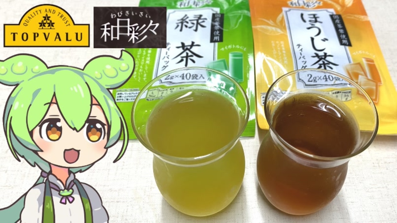 麦茶に飽きてきたので緑茶とほうじ茶を試してみることにしました。<br><br><br>【参考】<br>国産茶葉使用緑茶ティーバッグ(トップバリュ)<br><a href="https://www.topvalu.net/items/detail/4901810376537/" target="_blank" rel="noopener nofollow">https://www.topvalu.net/items/detail/4901810376537/</a><br>国産茶葉使用ほうじ茶ティーバッグ(トップバリュ)<br><a href="https://www.topvalu.net/items/detail/4901810376544/" target="_blank" rel="noopener nofollow">https://www.topvalu.net/items/detail/4901810376544/</a><br>国産むぎ茶ティーバッグ(トップバリュ)<br><a href="https://www.topvalu.net/items/detail/4549741028424/" target="_blank" rel="noopener nofollow">https://www.topvalu.net/items/detail/4549741028424/</a><br>宇治抹茶入り緑茶玉露入り(トップバリュ)<br><a href="https://www.topvalu.net/items/detail/4549741664103/" target="_blank" rel="noopener nofollow">https://www.topvalu.net/items/detail/4549741664103/</a><br>HOME COORDY スクエアピッチャー 1.4L(トップバリュ)<br><a href="https://www.topvalu.net/items/detail/4549414394771/" target="_blank" rel="noopener nofollow">https://www.topvalu.net/items/detail/4549414394771/</a><br>株式会社小谷穀粉<br><a href="https://osk-odani.co.jp/" target="_blank" rel="noopener nofollow">https://osk-odani.co.jp/</a><br>高知ユナイテッドSC<br><a href="http://kochi-usc.jp/" target="_blank" rel="noopener nofollow">http://kochi-usc.jp/</a><br>天王杯JFA第103回全日本サッカー選手権大会<br><a href="https://www.jfa.jp/match/emperorscup_2023/" target="_blank" rel="noopener nofollow">https://www.jfa.jp/match/emperorscup_2023/</a><br><br><br>【使用した素材】(※敬称略)<br>(合成音声)VOICEVOX/ずんだもん/四国めたん/<br><a href="https://voicevox.hiroshiba.jp/" target="_blank" rel="noopener nofollow">https://voicevox.hiroshiba.jp/</a><br>(立ち絵)坂本アヒル<br><a href="https://seiga.nicovideo.jp/seiga/im10788496" target="_blank" rel="noopener">im10788496</a>/<a href="https://seiga.nicovideo.jp/seiga/im10791276" target="_blank" rel="noopener">im10791276</a><br>(楽曲)甘茶の音楽工房/「楽しい麦畑」「フルーツパフェ」<br><a href="https://amachamusic.chagasi.com/" target="_blank" rel="noopener nofollow">https://amachamusic.chagasi.com/</a><br><br><br>【関連動画】<br>ドンキホーテの情熱価格とトップバリュの黄色いヤツ「麦茶」<br><a href="https://www.youtube.com/watch?v=9bigfUpPZuk&t=23s" target="_blank" rel="noopener nofollow">https://www.youtube.com/watch?v=9bigfUpPZuk&t=23s</a>