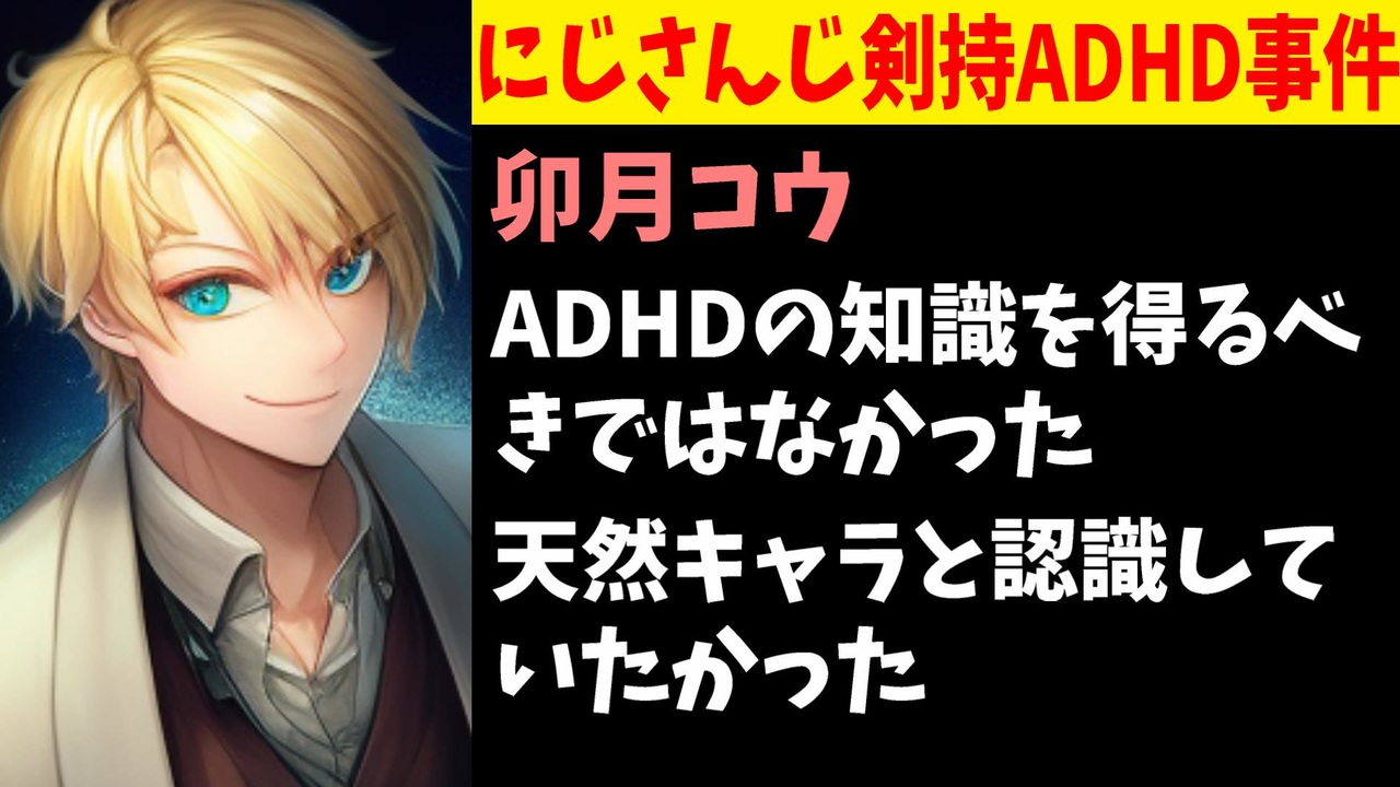 2023年8月23日、にじさんじ所属の剣持刀也さんが同僚の月ノ美兎さんと卯月コウさんに対しHDMI(ADHDを意味するスラング)と何度も揶揄し炎上しています。そんな卯月コウ君は魔界ノりりむさんに対しADHDの概念自体が辛いと語っていたと判明しました。<br><br>引用<br><a href="https://www.youtube.com/live/gPkvkFiG8vE?si=B5af3ajqtOlL7eNf" target="_blank" rel="noopener nofollow">https://www.youtube.com/live/gPkvkFiG8vE?si=B5af3ajqtOlL7eNf</a><br><br>Youtube <a href="https://www.youtube.com/@V_Virgin_Mary" target="_blank" rel="noopener nofollow">https://www.youtube.com/@V_Virgin_Mary</a><br>twitter <a href="https://twitter.com/V_Virgin_Mary" target="_blank" rel="noopener nofollow">https://twitter.com/V_Virgin_Mary</a><br><br>使用素材<br>高品質なフリー動画素材 - Pixabay <a href="https://pixabay.com/ja/videos" target="_blank" rel="noopener nofollow">https://pixabay.com/ja/videos</a>