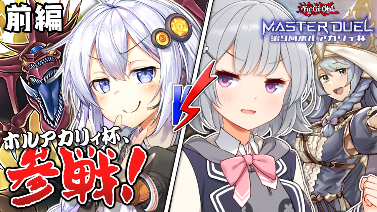 <span style="color: #ff0000; font-size: 24px;"><strong>殴り込みの時間じゃオラ~~~!</strong></span><br><br>ひなた☀と申す者です。<br><br>久々の投稿、久々の遊戯王マスターデュエル動画となりますが……<br>なんと、ボイロ投稿者・絵師が集う大規模コラボ大会<span style="color: #bf9000;"><strong>【ホルアカリィ杯】</strong></span>に参加してきました!<br>今回はその<strong>「前編」</strong>の動画になっています。<br><br>……実は初参加は5月に開催された第8回からなのですが、<br>大やらかしをしたので第9回を実質初参戦とさせてください。<br><span style="color: #b7b7b7;">何をやらかしたかは最初の1分半で大まかにまとめていますのでそちらを……!!!</span><br><br><strong>後編</strong>→<a href="https://www.nicovideo.jp/watch/sm42704606" class="watch">sm42704606</a><br><br>ーーーーーーーーーーーーーーーーーーーー<br><span style="font-size: 18px;"><strong>【対戦相手の方】</strong></span><br>・<span style="color: #666666;"><strong>ぱたー</strong></span> 様→<a href="https://twitter.com/paterDM" target="_blank" rel="noopener nofollow">https://twitter.com/paterDM</a><br>・<span style="color: #f1c232;"><strong>よむ太郎</strong></span> 様→<a href="https://twitter.com/Sacchaso11000" target="_blank" rel="noopener nofollow">https://twitter.com/Sacchaso11000</a><br>・<span style="color: #bf9000;"><strong>アレアレア</strong></span> 様→<a href="https://twitter.com/arearea_yuka" target="_blank" rel="noopener nofollow">https://twitter.com/arearea_yuka</a><br>・<span style="color: #b7b7b7;"><strong>小春レイン</strong></span> 様→<a href="https://twitter.com/El8Mb5" target="_blank" rel="noopener nofollow">https://twitter.com/El8Mb5</a><br>・<span style="color: #434343;"><strong>KUKU猫</strong></span> 様→<a href="https://twitter.com/96cat0909" target="_blank" rel="noopener nofollow">https://twitter.com/96cat0909</a><br />ーーーーーーーーーーーーーーーーーーーー<br><span style="font-size: 18px;"><strong>【お約束】</strong></span><br>・対戦相手への批判は<strong>お控えください</strong>!<br>・プレミ上等&編集ミス上等なので<strong>優しく指摘してください</strong>!<br>ーーーーーーーーーーーーーーーーーーーー<br><span style="font-size: 18px;"><strong>【シリーズ/マイリスト】</strong></span><br>・<span style="color: #9900ff;"><strong>遊戯王マスターデュエル</strong></span>→<a href="https://www.nicovideo.jp/series/300189" target="_blank" rel="noopener">series/300189</a><br>・<span style="color: #f1c232;"><strong>コラボさせて頂きました</strong></span>→<a href="https://www.nicovideo.jp/mylist/73700235" target="_blank" rel="noopener">mylist/73700235</a><br>ーーーーーーーーーーーーーーーーーーーー