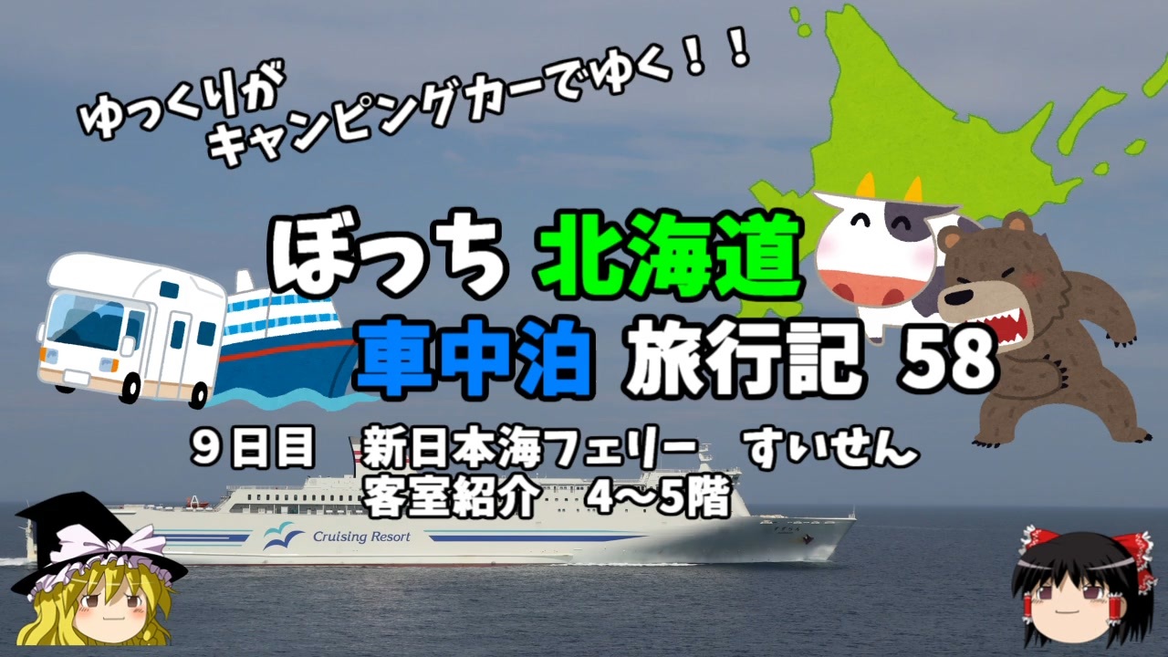 <span style="color: #ff0000; font-size: medium;"><u>※Youtubeで1話分、先行配信中 </u></span><br><span style="color: #0000ff; font-size: medium;"> <a href="http://www.youtube.com/c/なめこのぼっち旅" target="_blank" rel="noopener nofollow">http://www.youtube.com/c/なめこのぼっち旅</a></span><br><br><br>2022年GWに北海道にキャンピングカーで行ってきました!<br>その模様をお伝えします!<br><br>帰路のフェリーを紹介します!<br><br><span style="color: #ff0000;">コミュニティー→co2910020</span><br><br>twitter→<a href="https://twitter.com/ryontan" target="_blank" rel="noopener nofollow">https://twitter.com/ryontan</a><br><br><a href="https://www.nicovideo.jp/watch/sm42643333" class="watch">sm42643333</a>← 前回 <span style="color: #ff0000;">次回 →</span><a href="https://www.nicovideo.jp/watch/sm42712296" class="watch">sm42712296</a><br><br>今作 北海道車中泊旅行記→<a href="https://www.nicovideo.jp/mylist/73483035" target="_blank" rel="noopener">mylist/73483035</a><br>前作 モルディブ旅行記→<a href="https://www.nicovideo.jp/mylist/72339602" target="_blank" rel="noopener">mylist/72339602</a><br>東欧旅行記→<a href="https://www.nicovideo.jp/mylist/70339665" target="_blank" rel="noopener">mylist/70339665</a><br>解説・雑談系→<a href="https://www.nicovideo.jp/mylist/63171869" target="_blank" rel="noopener">mylist/63171869</a><br>スイス旅行記<span style="color: #000000; font-size: 14px;">→</span><a href="https://www.nicovideo.jp/mylist/68347869" target="_blank" rel="noopener">mylist/68347869</a><br>スペイン周遊記→<a href="https://www.nicovideo.jp/mylist/64537827" target="_blank" rel="noopener">mylist/64537827</a><br>韓国トルコ旅行記→<a href="https://www.nicovideo.jp/mylist/63654428" target="_blank" rel="noopener">mylist/63654428</a><br>車中泊旅行記→<a href="https://www.nicovideo.jp/mylist/54706524" target="_blank" rel="noopener">mylist/54706524</a><br>久米島(沖縄)旅行記→<a href="https://www.nicovideo.jp/mylist/63059251" target="_blank" rel="noopener">mylist/63059251</a><br>イギリスタイ旅行記→<a href="https://www.nicovideo.jp/mylist/60044833" target="_blank" rel="noopener">mylist/60044833</a><br>クルーズ旅行記→<a href="https://www.nicovideo.jp/mylist/57397685" target="_blank" rel="noopener">mylist/57397685</a><br>ドイツ周遊記→<a href="https://www.nicovideo.jp/mylist/54938346" target="_blank" rel="noopener">mylist/54938346</a><br>北海道旅行記→<a href="https://www.nicovideo.jp/mylist/52618057" target="_blank" rel="noopener">mylist/52618057</a><br>アメリカ横断記→<a href="https://www.nicovideo.jp/mylist/48621785" target="_blank" rel="noopener">mylist/48621785</a><br>イタリア周遊記→<a href="https://www.nicovideo.jp/mylist/45763559" target="_blank" rel="noopener">mylist/45763559</a><br>NY旅行記→<a href="https://www.nicovideo.jp/mylist/44343854" target="_blank" rel="noopener">mylist/44343854</a>