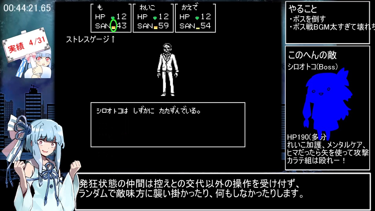 あどけない子供の命を脅かす初part3です。Twitterでチャート公開中(見れなかったらリプかDMまで)<br><br>第3話開始から第3話幕間まで<br><br>前:<a href="https://www.nicovideo.jp/watch/sm42636595" class="watch">sm42636595</a> 次:<a href="https://www.nicovideo.jp/watch/sm42775201" class="watch">sm42775201</a><br>Part1:<a href="https://www.nicovideo.jp/watch/sm42579010" class="watch">sm42579010</a><br><br>PC版:<a href="https://www.dlsite.com/home/work/=/product_id/RJ378466.html" target="_blank" rel="noopener nofollow">https://www.dlsite.com/home/work/=/product_id/RJ378466.html</a><br>Switch版:<a href="https://store-jp.nintendo.com/list/software/70010000062217.html" target="_blank" rel="noopener nofollow">https://store-jp.nintendo.com/list/software/70010000062217.html</a><br><br>制作サークル様の公式サイトはこ↑こ↓<br>「AlchemyBlue(アルケミーブルー)」<a href="https://www.alchemyblue.net/" target="_blank" rel="noopener nofollow">https://www.alchemyblue.net/</a><br><br>制作者様のTwitterはこ↑こ↓<br>「白飯マコト クトゥルフ神話RPGシリーズ」<a href="https://twitter.com/MarronBlanc" target="_blank" rel="noopener nofollow">https://twitter.com/MarronBlanc</a><br /><br>投稿者のX <a href="https://twitter.com/oketyu39" target="_blank" rel="noopener nofollow">https://twitter.com/oketyu39</a><br>チャート置いてます。他に何かあったらどうぞ。Xってなんだよ