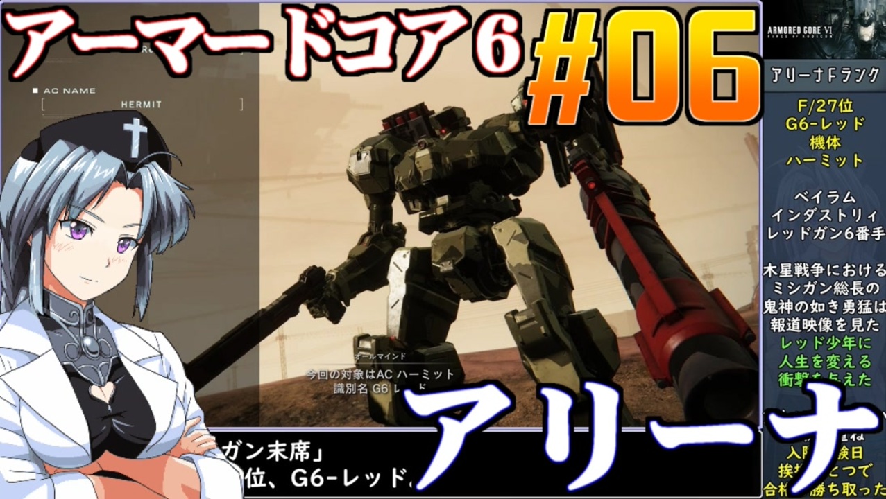 初アリーナでランクづけなんてありなん?なので初投稿です。<br>日雇いその08.第4隊長ラスティの情報を収集<br><br>◆アーマードコア6◆<br>1997年にフロムソフトウェアから発売されたハイスピードメカアクション<br>メカパーツの組み換えで戦場を戦い抜く愛機を作る<br>本作は2023年8月25日に発売されたARMOREDCOREⅥのsteam版。<br>桜乃そら実況動画<br><br>◆ニコニコクリエイターサポート<br><a href="https://creator-support.nicovideo.jp/registration/1203831" target="_blank" rel="noopener nofollow">https://creator-support.nicovideo.jp/registration/1203831</a><br>動画制作の励みになります<br><br>◆Twitter<br><a href="https://twitter.com/ikamono8bit" target="_blank" rel="noopener nofollow">https://twitter.com/ikamono8bit</a><br>◆youtube<br><a href="http://www.youtube.com/c/IkamonoY" target="_blank" rel="noopener nofollow">http://www.youtube.com/c/IkamonoY</a><br><br>シリーズまとめ <a href="https://www.nicovideo.jp/user/1203831/series" target="_blank" rel="noopener nofollow">https://www.nicovideo.jp/user/1203831/series</a><br>作った動画全部 <a href="https://www.nicovideo.jp/mylist/42963985" target="_blank" rel="noopener">mylist/42963985</a><br>作った動画全部2<a href="https://www.nicovideo.jp/mylist/70404393" target="_blank" rel="noopener">mylist/70404393</a>
