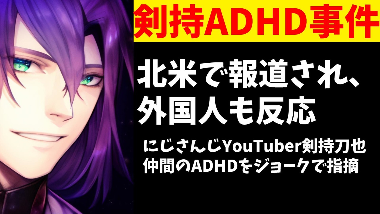 2023年8月23日、にじさんじ所属の剣持刀也さんが同僚の月ノ美兎さんと卯月コウさんに対しHDMI(ADHDを意味するスラング)と何度も揶揄し炎上していたけんが31日に北米最大のアニメニュースメディアに報道されてたようです。<br><br>引用<br><a href="https://www.animenewsnetwork.com/interest/2023-08-30/nijisanji-youtuber-kenmochi-toya-jokes-about-fellow-streamers-having-adhd/.201732" target="_blank" rel="noopener nofollow">https://www.animenewsnetwork.com/interest/2023-08-30/nijisanji-youtuber-kenmochi-toya-jokes-about-fellow-streamers-having-adhd/.201732</a><br><a href="https://twitter.com/yurifujisayaka/status/1695920756386140601" target="_blank" rel="noopener nofollow">https://twitter.com/yurifujisayaka/status/1695920756386140601</a><br><br>Youtube <a href="https://www.youtube.com/@V_Virgin_Mary" target="_blank" rel="noopener nofollow">https://www.youtube.com/@V_Virgin_Mary</a><br>twitter <a href="https://twitter.com/V_Virgin_Mary" target="_blank" rel="noopener nofollow">https://twitter.com/V_Virgin_Mary</a><br><br>使用素材<br>高品質なフリー動画素材 - Pixabay <a href="https://pixabay.com/ja/videos" target="_blank" rel="noopener nofollow">https://pixabay.com/ja/videos</a>