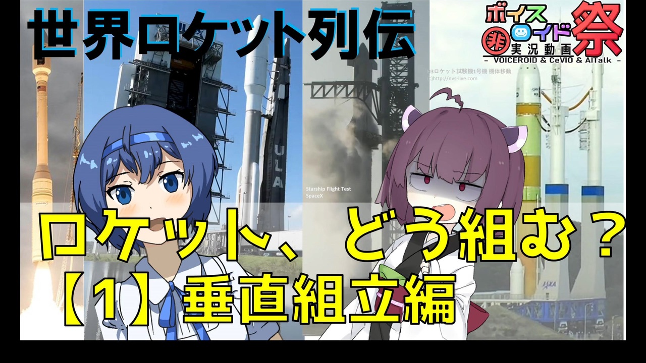 敗因:引き際の悪さ、エンコード時間<br><br>「第九回ひじき祭」(遅刻)今回はあまり語られない、ロケット組立と発射台についてみていきます。<br>組立棟や移動発射台、案外ロケットによって違うんです。<br><br>宇宙開発解説マイリス <span style="color: #006699; font-size: 14px;">mylist/</span>66566849 <br><span style="color: #000000; font-size: 14px;">====================<br><br>お借りしているきりたんの立ち絵:このりさん </span><a href="https://seiga.nicovideo.jp/seiga/im8435291" target="_blank" rel="noopener">im8435291</a><br><span style="color: #000000; font-size: 14px;">つづみちゃん、ささらちゃんの立ち絵:あるめいさん </span><a href="https://seiga.nicovideo.jp/seiga/im9519556" target="_blank" rel="noopener">im9519556</a><span style="color: #000000; font-size: 14px;"> </span><a href="https://seiga.nicovideo.jp/seiga/im9667684" target="_blank" rel="noopener">im9667684</a><br><span style="color: #000000; font-size: 14px;">本動画の元データ:基本的には動画内で記載。<br>音楽:コンテンツツリーおよび</span><span style="color: #5f6368; font-size: 14px;">H</span><span style="color: #4d5156; font-size: 14px;">/</span><span style="color: #5f6368; font-size: 14px;">mix</span><span style="color: #4d5156; font-size: 14px;"> gallery</span><br><br><span style="color: #000000; font-size: 14px;">PS:KSPでロケット飛ばしてます~よろしければぜひ。</span><br><span style="color: #006699; font-size: 14px;"><a href="https://www.nicovideo.jp/mylist/59573448" target="_blank" rel="noopener">mylist/59573448</a></span><br><br><a target="_blank" href="https://qa.nicovideo.jp/faq/show/19424?site_domain=default" style="font-size: 13px;color: #657586; text-decoration: underline; line-height: 1.4">この動画は投稿者によって修正されました</a>