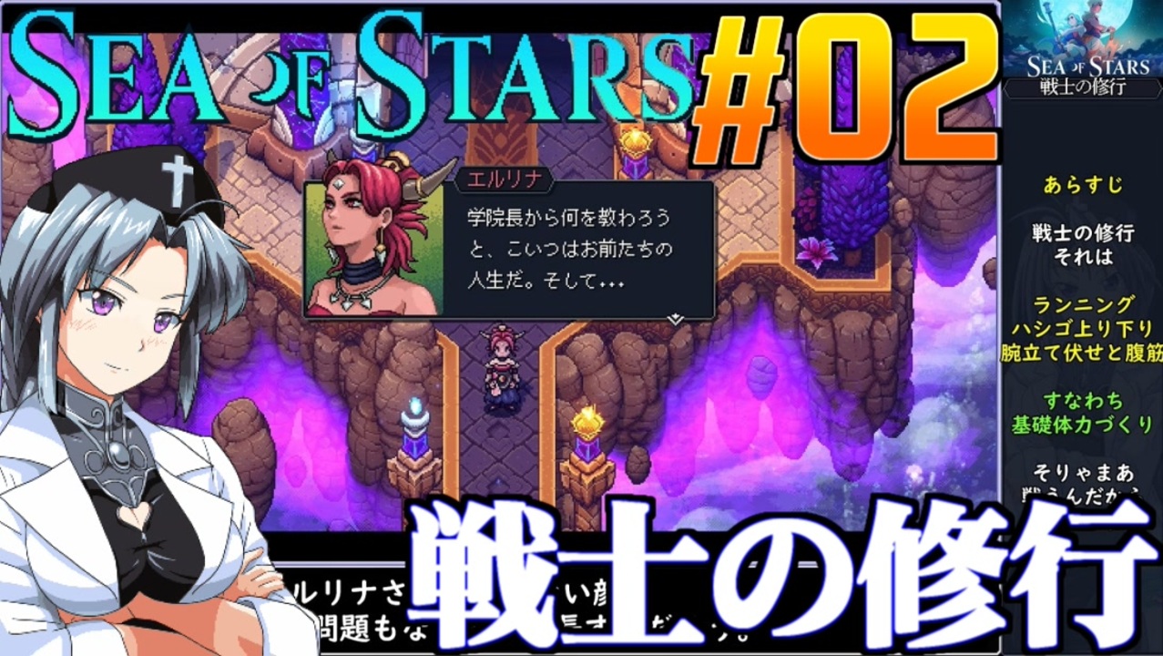 初修行するぞ修行するぞ徹底的にハードな修行するので初投稿です。<br>禁断の洞窟~ゼニス学院<br><br>◆シーオブスターズ◆<br>SEA OF STARSは2016年設立のカナダメーカー、sabotageStudio製作のRPG。<br>2018年発売のアクションゲームTHEMessengerの前日譚。<br>本作は2023年8月29日発売。<br>桜乃そら実況動画<br><br>◆ニコニコクリエイターサポート<br><a href="https://creator-support.nicovideo.jp/registration/1203831" target="_blank" rel="noopener nofollow">https://creator-support.nicovideo.jp/registration/1203831</a><br>動画制作の励みになります<br><br>◆Twitter<br><a href="https://twitter.com/ikamono8bit" target="_blank" rel="noopener nofollow">https://twitter.com/ikamono8bit</a><br>◆youtube<br><a href="http://www.youtube.com/c/IkamonoY" target="_blank" rel="noopener nofollow">http://www.youtube.com/c/IkamonoY</a><br><br>シリーズまとめ <a href="https://www.nicovideo.jp/user/1203831/series" target="_blank" rel="noopener nofollow">https://www.nicovideo.jp/user/1203831/series</a><br>作った動画全部 <a href="https://www.nicovideo.jp/mylist/42963985" target="_blank" rel="noopener">mylist/42963985</a><br>作った動画全部2<a href="https://www.nicovideo.jp/mylist/70404393" target="_blank" rel="noopener">mylist/70404393</a>