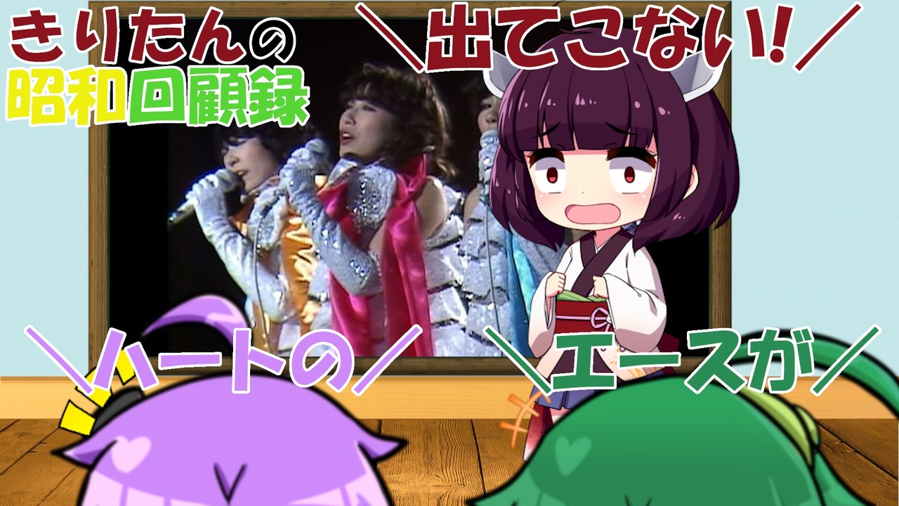 <strong>ようこそ! 昭和回顧録へ!</strong><br><br>昭和53年、始まります!<br>アイドルという存在は現在当たり前のように語られていますが、当然のようにアイドルにも始まりがあります。そしてまた終わりもいつか来るのだろうと、昭和を生きたアナタにはお分かりになるんじゃないでしょうか。<br><br>では、ごゆっくりとお楽しみください!<br><br><a href="https://www.nicovideo.jp/watch/sm42607060" class="watch">sm42607060</a> ← 前 次 → <a href="https://www.nicovideo.jp/watch/sm42793207" class="watch">sm42793207</a><br>回顧目録 → <a href="https://www.nicovideo.jp/mylist/70366107" target="_blank" rel="noopener">mylist/70366107</a><br>YouTube版 → <a href="https://youtu.be/4CIj13ymi3o" target="_blank" rel="noopener nofollow">https://youtu.be/4CIj13ymi3o</a><br><br>シリーズ一話マイリスト →<span style="color: #006699;"> <a href="https://www.nicovideo.jp/mylist/69322831" target="_blank" rel="noopener">mylist/69322831</a></span><br>試作品マイリスト → <a href="https://www.nicovideo.jp/mylist/69322827" target="_blank" rel="noopener">mylist/69322827</a><br><br>更新情報とか質問とかツイッター → <a href="https://twitter.com/suzakatsuki " target="_blank" rel="noopener nofollow">https://twitter.com/suzakatsuki </a><br><br>~お借りしたもの~<br>キャスト:東北きりたん、結月ゆかり、東北ずん子<br>立ち絵:blueberry様(SD東北きりたん他)、りんどう様(ボイロミニキャラ後ろ姿素材)<br>背景:Pixabay様<br>小物類:写真AC様<br> イラストAC様<br>BGM:こんとどぅふぇ HiLi様<br> OP ほいっぷ!インストゥルメンタル<br> BGM お昼寝まくら、烏丸の地、ひとりぼっちの妖精-キミ-、メルヘンぼうけんたい、シーサイド・クッキー、ゲンゲンゲンキだもん、ボクの旅立ち、目が覚めた<br>効果音:魔王魂様<br> On-Jin ~音人~様<br><br>※リンク情報などは、マイリストの説明欄にて補足しています。