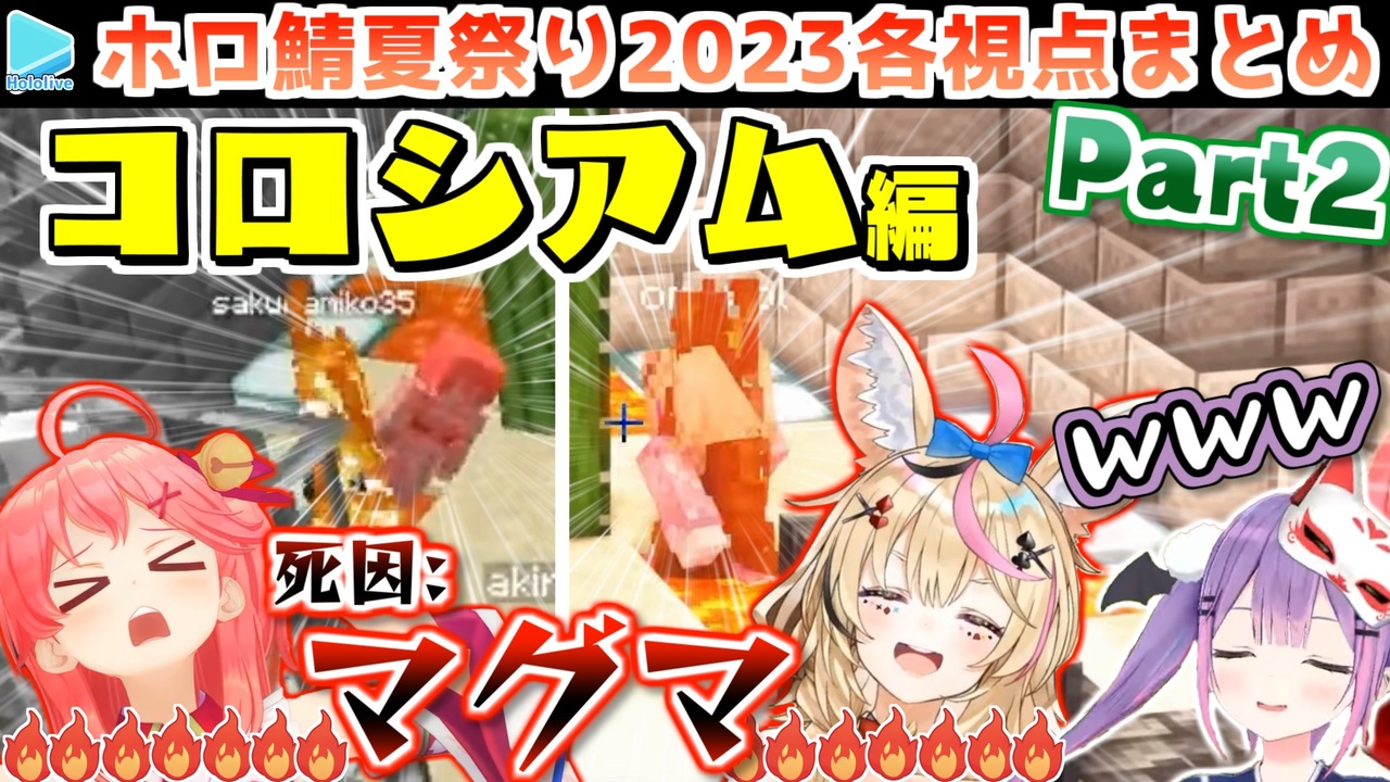 コロシアム終了まで<br><br>文字数制限で元動画様URL載りません<br><br><a href="#" class="seekTime" data-seekTime="00:00" onclick="seekNicoPlayer('#00:00'); return false;">#00:00</a> 第1試合 ぺこらVSまつり<br><a href="#" class="seekTime" data-seekTime="03:35" onclick="seekNicoPlayer('#03:35'); return false;">#03:35</a> 第2試合 ミオVSぼたん<br><a href="#" class="seekTime" data-seekTime="07:13" onclick="seekNicoPlayer('#07:13'); return false;">#07:13</a> 第3試合 ルイVSポルカ<br><a href="#" class="seekTime" data-seekTime="09:33" onclick="seekNicoPlayer('#09:33'); return false;">#09:33</a> 第4試合 ベールズVSいろは<br><a href="#" class="seekTime" data-seekTime="13:20" onclick="seekNicoPlayer('#13:20'); return false;">#13:20</a> 第5試合 おかゆVSトワ<br><a href="#" class="seekTime" data-seekTime="18:21" onclick="seekNicoPlayer('#18:21'); return false;">#18:21</a> 第6試合 みこVSアキロゼ<br><a href="#" class="seekTime" data-seekTime="25:03" onclick="seekNicoPlayer('#25:03'); return false;">#25:03</a> 第7試合 スバルVSこより<br><a href="#" class="seekTime" data-seekTime="33:02" onclick="seekNicoPlayer('#33:02'); return false;">#33:02</a> 第8試合 フブキVSクロヱ<br><a href="#" class="seekTime" data-seekTime="35:12" onclick="seekNicoPlayer('#35:12'); return false;">#35:12</a> 準々決勝 第1試合 ぼたんVSまつり<br><a href="#" class="seekTime" data-seekTime="41:34" onclick="seekNicoPlayer('#41:34'); return false;">#41:34</a> 準々決勝 第2試合 いろはVSルイ<br><a href="#" class="seekTime" data-seekTime="45:33" onclick="seekNicoPlayer('#45:33'); return false;">#45:33</a> 準々決勝 第3試合 トワVSアキロゼ<br><a href="#" class="seekTime" data-seekTime="48:24" onclick="seekNicoPlayer('#48:24'); return false;">#48:24</a> 準々決勝 第4試合 こよりVSクロヱ<br><a href="#" class="seekTime" data-seekTime="55:50" onclick="seekNicoPlayer('#55:50'); return false;">#55:50</a> 準決勝 第1試合 まつりVSルイ<br><a href="#" class="seekTime" data-seekTime="58:53" onclick="seekNicoPlayer('#58:53'); return false;">#58:53</a> 準決勝 第2試合 クロヱVSトワ<br><a href="#" class="seekTime" data-seekTime="1:01" onclick="seekNicoPlayer('#1:01'); return false;">#1:01</a>:29 3位決定戦 まつりVSトワ<br><a href="#" class="seekTime" data-seekTime="1:07" onclick="seekNicoPlayer('#1:07'); return false;">#1:07</a>:35 決勝 クロヱVSルイ<br /><span style="color: #b7b7b7; font-size: 10px;">ホロライブ切り抜き/なめたけ <a href="https://t.co/CBwJLnYR2c" target="_blank" rel="noopener nofollow">https://t.co/CBwJLnYR2c</a></span>