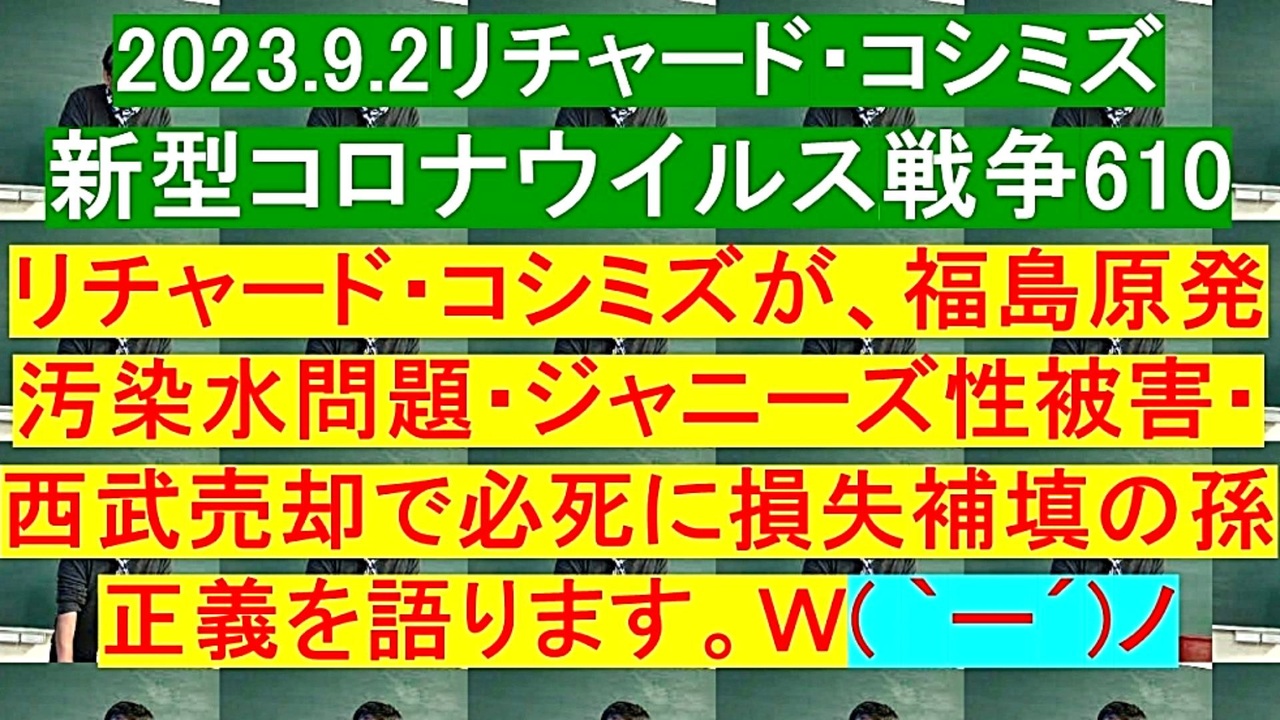 <span style="color: #cc4125;"><strong>「 テーマ : 新型コロナウイルス戦争 610 」</strong></span><br><br><span style="color: #ff0000;"><strong>「『 リチャード・コシミズ 』が、『 福島原発汚染水問題 』・『 ジャニーズ性被害 』・『 西武売却で、<br> 必死に損失補填の孫正義 』を語ります。W( `ー´)ノ 」</strong></span><br><br><span style="color: #0000ff;"><strong>「『 イベルメクチン・アビガン・その他コロナ対策 』について、ご意見をお寄せ下さい! 」<br><br> ◐ E-mail:richardkoshimizu@gmail.com</strong></span><br><br><strong>◐「クリエイター・サポート」・「ニコニ広告」・「フォロー」等、ご協力の程宜しくお願い致します。RK</strong><br><br><span style="color: #38761d;"><strong>◐ リチャード・コシミズ 講演会 公式 動画ギャラリー</strong></span><br> <span style="color: #38761d;"><strong><a href="http://www.t-sskk.com/richardkoshimizu/video-gallery/index.html" target="_blank" rel="noopener nofollow">http://www.t-sskk.com/richardkoshimizu/video-gallery/index.html</a><br><br>◐ リチャード・コシミズ 講演会『 ニコニコ生放送「 LIVE 」』</strong></span><br> <span style="color: #38761d;"><strong><a href="https://bit.ly/3Bx8F5w" target="_blank" rel="noopener nofollow">https://bit.ly/3Bx8F5w</a><br><br>◐ リチャード・コシミズ『 ニコニコ チャンネル 』</strong></span><br> <span style="color: #38761d;"><strong><a href="https://ch.nicovideo.jp/richardkoshimizu" target="_blank" rel="noopener nofollow">https://ch.nicovideo.jp/richardkoshimizu</a><br><br>◐ リチャード・コシミズ 公式 ブログ</strong></span><br> <span style="color: #38761d;"><strong><a href="http://08054623210.jugem.jp/" target="_blank" rel="noopener nofollow">http://08054623210.jugem.jp/</a><br><br>◐ リチャード・コシミズ 公式 ホームページ</strong></span><br> <span style="color: #38761d;"><strong><a href="http://richardkoshimizu.boo.jp/" target="_blank" rel="noopener nofollow">http://richardkoshimizu.boo.jp/</a></strong></span><br>