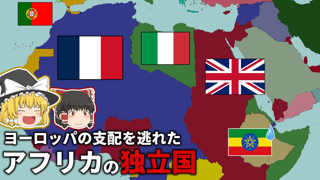 <span style="font-size: 18px;">歴史に出てくるアフリカといえば</span><br>大陸自体が<strong>ヨーロッパに支配される植民地時代</strong>を思い浮かべる方が多いはず。<br><br><span style="font-size: 16px;"><strong>そこで今回はそんな植民地時代に独立を保ち続けた</strong></span><span style="color: #ff0000; font-size: 16px;"><strong>アフリカの国</strong></span><span style="font-size: 16px;"><strong>とその理由を解説してみました!</strong></span><br><br>◆マイリスト→<a href="https://www.nicovideo.jp/mylist/73354161" target="_blank" rel="noopener nofollow">https://www.nicovideo.jp/mylist/73354161</a><br>◆アフリカの情報を上げてるうぷ主のTwitter→<a href="https://twitter.com/AfrikaanerMaris" target="_blank" rel="noopener nofollow">https://twitter.com/AfrikaanerMaris</a><br><br>あといいねくれるとうれしいです<br>いっぱいコメントもしてくれるとうぷ主が喜びます。<br>