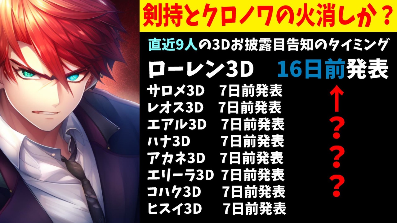 2023年9月6日、にじさんじ公式ツイッターよりローレン・イロアスの3Dお披露目配信が告知されたのですが・・・<br><br>引用<br><a href="https://twitter.com/nijisanji_app/status/1699392001312190870" target="_blank" rel="noopener nofollow">https://twitter.com/nijisanji_app/status/1699392001312190870</a><br><br>Youtube <a href="https://www.youtube.com/@V_Virgin_Mary" target="_blank" rel="noopener nofollow">https://www.youtube.com/@V_Virgin_Mary</a><br>twitter <a href="https://twitter.com/V_Virgin_Mary" target="_blank" rel="noopener nofollow">https://twitter.com/V_Virgin_Mary</a><br><br>使用素材<br>高品質なフリー動画素材 - Pixabay <a href="https://pixabay.com/ja/videos" target="_blank" rel="noopener nofollow">https://pixabay.com/ja/videos</a>