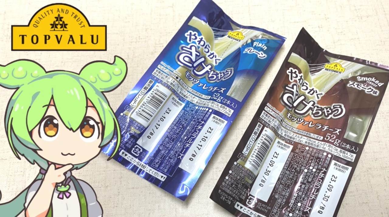 縦にさけるチーズです。<br><br><br>【参考】<br>やわらかくさけちゃうモッツァレラチーズ プレーン(トップバリュ)<br><a href="https://www.topvalu.net/items/detail/4549741386470/" target="_blank" rel="noopener nofollow">https://www.topvalu.net/items/detail/4549741386470/</a><br>やわらかくさけちゃうモッツァレラチーズ スモーク味(トップバリュ)<br><a href="https://www.topvalu.net/items/detail/4549741444613/" target="_blank" rel="noopener nofollow">https://www.topvalu.net/items/detail/4549741444613/</a><br>マリンフード株式会社<br><a href="https://www.marinfood.co.jp/" target="_blank" rel="noopener nofollow">https://www.marinfood.co.jp/</a><br>雪印北海道100 さけるチーズ(雪印メグミルク)<br><a href="https://www.meg-snow.com/hokkaido100/sakerucheese/" target="_blank" rel="noopener nofollow">https://www.meg-snow.com/hokkaido100/sakerucheese/</a><br><br><br>【使用した素材】(※敬称略)<br>(合成音声)VOICEVOX/ずんだもん/四国めたん/<br><a href="https://voicevox.hiroshiba.jp/" target="_blank" rel="noopener nofollow">https://voicevox.hiroshiba.jp/</a><br>(立ち絵)坂本アヒル<br><a href="https://seiga.nicovideo.jp/seiga/im10788496" target="_blank" rel="noopener">im10788496</a>/<a href="https://seiga.nicovideo.jp/seiga/im10791276" target="_blank" rel="noopener">im10791276</a><br>(楽曲)甘茶の音楽工房/「楽しい麦畑」<br><a href="https://amachamusic.chagasi.com/" target="_blank" rel="noopener nofollow">https://amachamusic.chagasi.com/</a><br><br><br>【関連動画】<br>ドン・キホーテの情熱価格とトップバリュの黄色いヤツ「ベビーチーズ」<br><a href="https://www.youtube.com/watch?v=DPnoTrdD33o&t=15s" target="_blank" rel="noopener nofollow">https://www.youtube.com/watch?v=DPnoTrdD33o&t=15s</a><br>トップバリュの黄色いヤツ「スモークチーズ」<br><a href="https://www.youtube.com/watch?v=sTasR561x40&t=1s" target="_blank" rel="noopener nofollow">https://www.youtube.com/watch?v=sTasR561x40&t=1s</a>