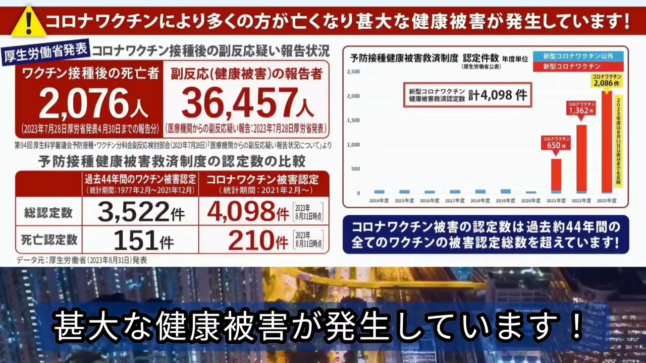 ①<br>拡散希望‼️<br>危険なXBB対応mRNAワクチン接種を止めるためのチラシが、東北有志医師の会監修として完成<br>「新しいワクチンは、今までのワクチンよりもさらに毒性が強いのに、既に流行の終わった古いXBB株にしか対応していない。マウスを使った治験しかしておらず、不適切な印象操作が行われている。百害あって一利なし」<br>❶<a href="https://twitter.com/hudikaha/status/1699272694662037558?t=qBRAB0lMU_Nit-jQfKCFbg&s=19" target="_blank" rel="noopener nofollow">https://twitter.com/hudikaha/status/1699272694662037558?t=qBRAB0lMU_Nit-jQfKCFbg&s=19</a><br>❷<a href="https://t.co/U7MEWZC2N4" target="_blank" rel="noopener nofollow">https://t.co/U7MEWZC2N4</a><br>❸<a href="https://x.gd/KAO23" target="_blank" rel="noopener nofollow">https://x.gd/KAO23</a><br><br>❶~❸全てチラシが見れます。<br><br><br><br>定期的にアドバイザリーボードのデータを定期的にグラフ化しています<br> (出張と重なり、今回遅れました汗)<br> データ改ざん修正と言われた4月3週から同じ傾向のデータが並んでいます<br>元データ <br><a href="https://t.co/MTwYTTVTCC" target="_blank" rel="noopener nofollow">https://t.co/MTwYTTVTCC</a> <br><a href="https://t.co/SWBi0wBEBQ" target="_blank" rel="noopener nofollow">https://t.co/SWBi0wBEBQ</a><br><br><br><br>厚労省アドバイザリーボードのデータですね。2022年9月7日発表(データ8/22-8/28)を最後にワクチン接種回数別感染率の公表を終了。もちろん都合が悪くなったから。続いて“全数把握やめろ”という世論に乗っかる形で「正確な数字を追えない」から詳細データを出せないという演出までしました。ク●です。<br><a href="https://t.co/SkMZMYKoSm" target="_blank" rel="noopener nofollow">https://t.co/SkMZMYKoSm</a><br><br><br><br>死因問わずコロナ死という2年前の厚労省通達はどう考えてもおかしい。いくらWHOの指示とはいえ、あの定義により派生するコロナ対策のすべてが間違った。大村知事が第7波で愛知県のコロナ死はゼロと発言した。人口動態統計では逆にコロナ死が増えるという現象も起きている。厚労省は再調査すべきだ。<br><a href="https://t.co/emmWgGAD1G" target="_blank" rel="noopener nofollow">https://t.co/emmWgGAD1G</a><br><br><br><br>コロナで感染死亡した人の10人中9人がコロナワクチンを打っていた<br>2022 年の新型コロナウイルス感染症による死亡者の 92% は 3 回以上のワクチン接種者でした<br>死にたい方はワクチンを打ちましょう。<br> 無料ですよ。<br> <a href="https://t.co/iMn2MGYajy" target="_blank" rel="noopener nofollow">https://t.co/iMn2MGYajy</a> <br> <a href="https://t.co/HXnrdCDQHG" target="_blank" rel="noopener nofollow">https://t.co/HXnrdCDQHG</a><br><br><br><br><br><br><br />著作権、肖像権に配慮して作成しております。<br><br>◆気になったニュースの台本!?<br>メモ代わりに作った台本をそのままあげてます<br><a href="https://keiichiro8140.hatenablog.com/." target="_blank" rel="noopener nofollow">https://keiichiro8140.hatenablog.com/.</a><br><br><br>ここからはシリーズ紹介<br><br><br>◆ ワクチン解毒・デトックス<br><a href="https://x.gd/fZweg" target="_blank" rel="noopener nofollow">https://x.gd/fZweg</a><br><br>◆ウイリアム・マキス博士のがん治療(イベルメクチン・フェンベンダゾール等)<br><a href="https://x.gd/AtFYS" target="_blank" rel="noopener nofollow">https://x.gd/AtFYS</a><br><br>◆予防接種健康被害救済制度<br><a href="https://x.gd/0xK9x" target="_blank" rel="noopener nofollow">https://x.gd/0xK9x</a><br><br>◆気になったニュース #1501~<br><br>◆ 【ショートver】気になったニュース<br><a href="https://x.gd/7MxXC" target="_blank" rel="noopener nofollow">https://x.gd/7MxXC</a><br><br>◆ 気になったニュース #1001~<br><a href="https://x.gd/Lp8gv" target="_blank" rel="noopener nofollow">https://x.gd/Lp8gv</a><br><br>◆ 気になったニュース #501~<br><a href="https://x.gd/EmbS4" target="_blank" rel="noopener nofollow">https://x.gd/EmbS4</a><br><br>◆ 気になったニュース #1~#500<br><a href="https://x.gd/uPhNb" target="_blank" rel="noopener nofollow">https://x.gd/uPhNb</a><br><br>◆ X(旧Twitter)・テレグラムで気になった情報<br><a href="https://x.gd/YG6FT" target="_blank" rel="noopener nofollow">https://x.gd/YG6FT</a><br><br>◆ 日比谷5万人パレードデ⚪生放送アーカイブ動画<br><a href="https://x.gd/3CHJv" target="_blank" rel="noopener nofollow">https://x.gd/3CHJv</a><br><br>◆日比谷5万人パレード⚪モのマイリスト作ってみました<br><a href="https://nico.ms/mylist/76828848?ref=sp_other" target="_blank" rel="noopener nofollow">https://nico.ms/mylist/76828848?ref=sp_other</a><br><br>◆3.30 令和の百姓⚪⚪<br><a href="https://www.nicovideo.jp/series/511791?ref=garage_share_other" target="_blank" rel="noopener nofollow">https://www.nicovideo.jp/series/511791?ref=garage_share_other</a><br><br>◆ 及川幸久さんの【XNEWS】シリーズ<br><a href="https://x.gd/3k78K" target="_blank" rel="noopener nofollow">https://x.gd/3k78K</a><br><br>◆これまでの動画<a href="https://x.gd/sPXoJ" target="_blank" rel="noopener nofollow">https://x.gd/sPXoJ</a><br><br>◆もしも(BAN)の時のためのマイリンク集<a href="https://lit.link/K-16_News44" target="_blank" rel="noopener nofollow">https://lit.link/K-16_News44</a><br><br>
