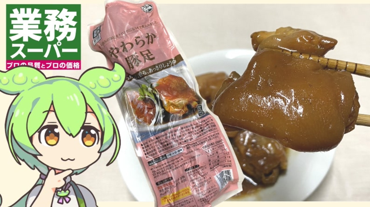 業務スーパーの豚足です。<br><br><br>【参考】<br>やわらか豚足(業務スーパー)<br><a href="https://www.gyomusuper.jp/product/detail.php?go_id=6639" target="_blank" rel="noopener nofollow">https://www.gyomusuper.jp/product/detail.php?go_id=6639</a><br>宮城製粉株式会社<br><a href="http://www.miyagiseifun.jp/index.html" target="_blank" rel="noopener nofollow">http://www.miyagiseifun.jp/index.html</a><br>コラーゲン(e-ヘルスネット 厚生労働省)<br><a href="https://www.e-healthnet.mhlw.go.jp/information/dictionary/food/ye-011.html" target="_blank" rel="noopener nofollow">https://www.e-healthnet.mhlw.go.jp/information/dictionary/food/ye-011.html</a><br>コラーゲンって?美容や健康維持に必須の栄養素!働きと取り方を徹底解説(大正製薬)<br><a href="https://brand.taisho.co.jp/contents/beauty/431/" target="_blank" rel="noopener nofollow">https://brand.taisho.co.jp/contents/beauty/431/</a><br>コラーゲンの基礎知識(資生堂)<br><a href="https://www.shiseido.co.jp/collagenlabo/know/about/" target="_blank" rel="noopener nofollow">https://www.shiseido.co.jp/collagenlabo/know/about/</a><br>タンパク質とは【タンパク質の種類、機能、働きなどを解説】(森永製菓)<br><a href="https://www.morinaga.co.jp/protein/columns/detail/?id=113&category=health" target="_blank" rel="noopener nofollow">https://www.morinaga.co.jp/protein/columns/detail/?id=113&category=health</a><br>タンパク質について(JAXA)<br><a href="https://humans-in-space.jaxa.jp/protein/public/about/accessible.html#ctop" target="_blank" rel="noopener nofollow">https://humans-in-space.jaxa.jp/protein/public/about/accessible.html#ctop</a><br><br><br><br>【使用した素材】(※敬称略)<br>(合成音声)VOICEVOX/ずんだもん/四国めたん/<br><a href="https://voicevox.hiroshiba.jp/" target="_blank" rel="noopener nofollow">https://voicevox.hiroshiba.jp/</a><br>(立ち絵)坂本アヒル<br><a href="https://seiga.nicovideo.jp/seiga/im10788496" target="_blank" rel="noopener">im10788496</a>/<a href="https://seiga.nicovideo.jp/seiga/im10791276" target="_blank" rel="noopener">im10791276</a><br>(楽曲)甘茶の音楽工房/「楽しい麦畑」「お城の舞踏会」<br><a href="https://amachamusic.chagasi.com/" target="_blank" rel="noopener nofollow">https://amachamusic.chagasi.com/</a><br><br><br>【関連動画】<br>業務スーパーの「ずんだもち」<br><a href="https://www.youtube.com/watch?v=4EcjCVjClaM" target="_blank" rel="noopener nofollow">https://www.youtube.com/watch?v=4EcjCVjClaM</a>