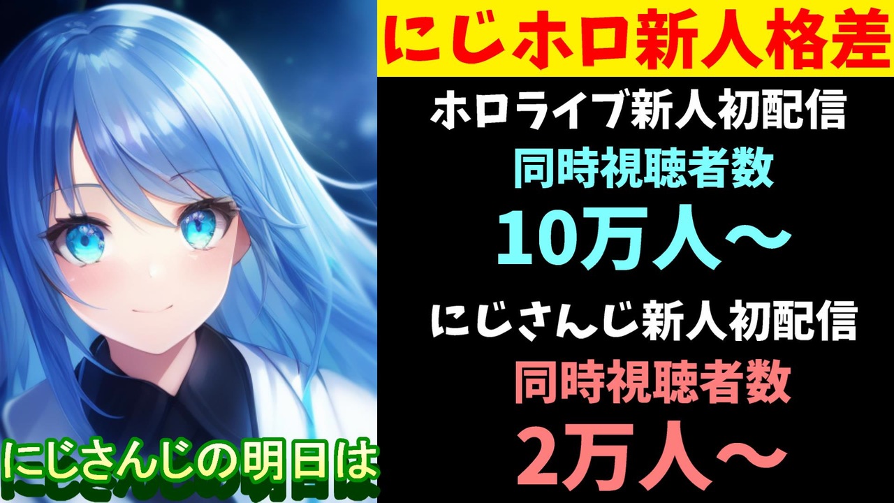 2023年9月9日、ホロライブプロダクション「hololive DEV_IS」所属の新人「火威 青」「音乃瀬 奏」「一条 莉々華」の3人が初配信を行ったのですが全員最初から最大同時視聴者数10万超えとして話題になっています。<br><br>引用<br><a href="https://www.vstats.jp/" target="_blank" rel="noopener nofollow">https://www.vstats.jp/</a><br><a href="https://hikaku-sitatter.com/" target="_blank" rel="noopener nofollow">https://hikaku-sitatter.com/</a><br><br>Youtube <a href="https://www.youtube.com/@V_Virgin_Mary" target="_blank" rel="noopener nofollow">https://www.youtube.com/@V_Virgin_Mary</a><br>twitter <a href="https://twitter.com/V_Virgin_Mary" target="_blank" rel="noopener nofollow">https://twitter.com/V_Virgin_Mary</a><br><br>使用素材<br>高品質なフリー動画素材 - Pixabay <a href="https://pixabay.com/ja/videos" target="_blank" rel="noopener nofollow">https://pixabay.com/ja/videos</a>