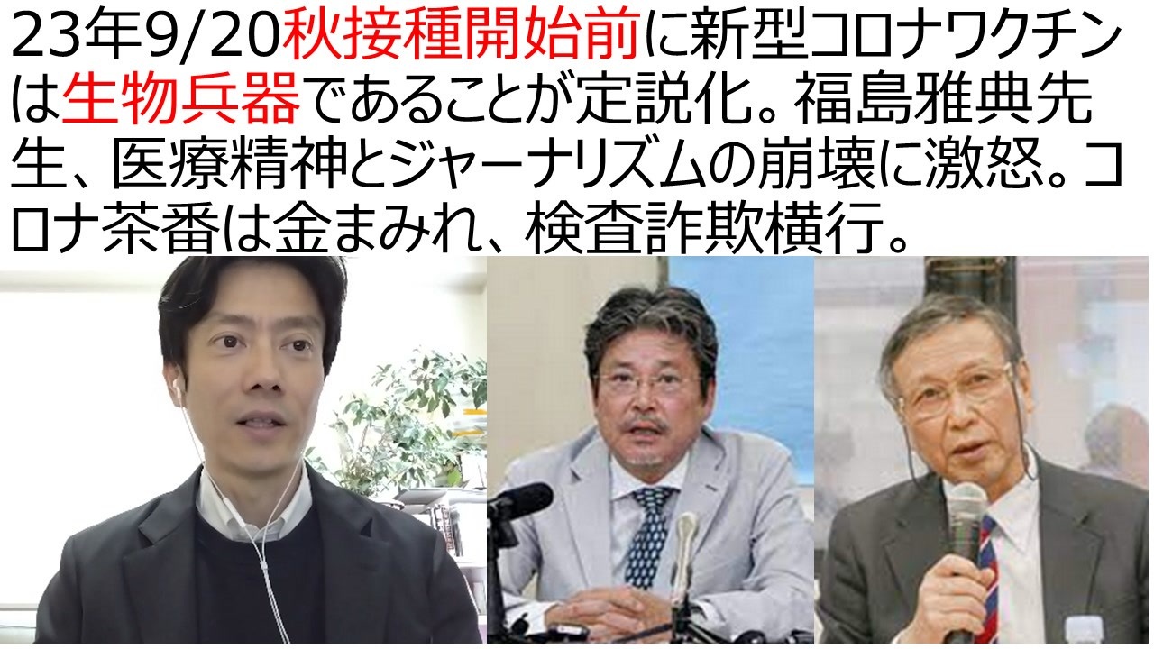 再公開しました!)ワクチン問題研究会発足会見 2023/09/07 14時からの録画<br><a href="https://www.nicovideo.jp/watch/sm42729888" target="_blank" rel="noopener nofollow">https://www.nicovideo.jp/watch/sm42729888</a><br><br>目覚めた人だけ生き残れる第三次世界大戦。目覚めには強い衝撃も必要。石濱哲信先生、細川博司先生、竹原信一先生。杉田穂高先生。谷本誠一先生、池田としえ先生の声を聞け!<br><a href="https://www.nicovideo.jp/watch/so42737706?panel=mylist" target="_blank" rel="noopener nofollow">https://www.nicovideo.jp/watch/so42737706?panel=mylist</a><br><br>一般社団法人ワクチン問題研究会(LHS研究所)<br><a href="https://jsvrc.jp/chairman/" target="_blank" rel="noopener nofollow">https://jsvrc.jp/chairman/</a><br><br>日本国独立宣言論 私は独立を宣言する 真田信秋(紙と電子書籍)<br><a href="https://www.amazon.co.jp/dp/B0CT86DX9G/" target="_blank" rel="noopener nofollow">https://www.amazon.co.jp/dp/B0CT86DX9G/</a>