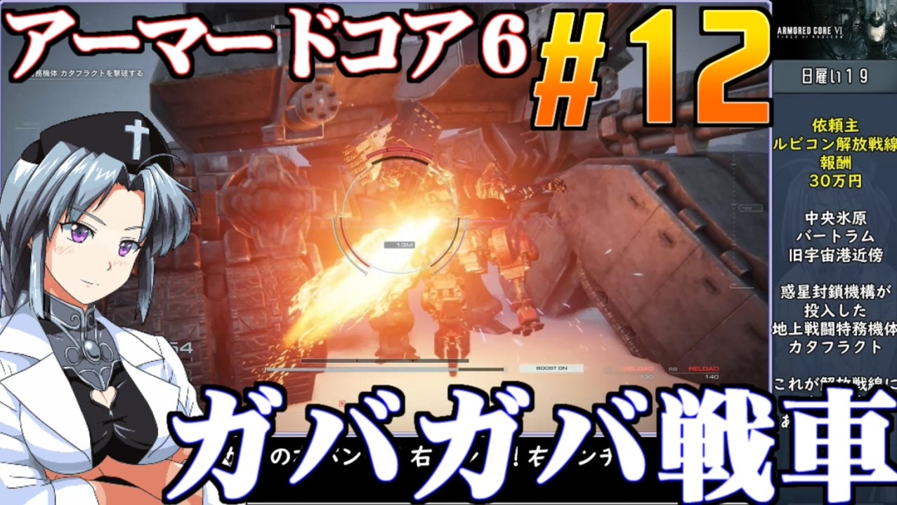 初戦車を洗車するので初投稿です。<br>日雇いその18.コヨーテスへの返礼ミサイル防衛<br>日雇いその19.惑星封鎖機構「地上」最強特務機体カタフラクト破壊<br><br>◆アーマードコア6◆<br>1997年にフロムソフトウェアから発売されたハイスピードメカアクション<br>メカパーツの組み換えで戦場を戦い抜く愛機を作る<br>本作は2023年8月25日に発売されたARMOREDCOREⅥのsteam版。<br>桜乃そら実況動画<br><br>◆ニコニコクリエイターサポート<br><a href="https://creator-support.nicovideo.jp/registration/1203831" target="_blank" rel="noopener nofollow">https://creator-support.nicovideo.jp/registration/1203831</a><br>動画制作の励みになります<br><br>◆Twitter<br><a href="https://twitter.com/ikamono8bit" target="_blank" rel="noopener nofollow">https://twitter.com/ikamono8bit</a><br>◆youtube<br><a href="http://www.youtube.com/c/IkamonoY" target="_blank" rel="noopener nofollow">http://www.youtube.com/c/IkamonoY</a><br><br>シリーズまとめ <a href="https://www.nicovideo.jp/user/1203831/series" target="_blank" rel="noopener nofollow">https://www.nicovideo.jp/user/1203831/series</a><br>作った動画全部 <a href="https://www.nicovideo.jp/mylist/42963985" target="_blank" rel="noopener">mylist/42963985</a><br>作った動画全部2<a href="https://www.nicovideo.jp/mylist/70404393" target="_blank" rel="noopener">mylist/70404393</a>