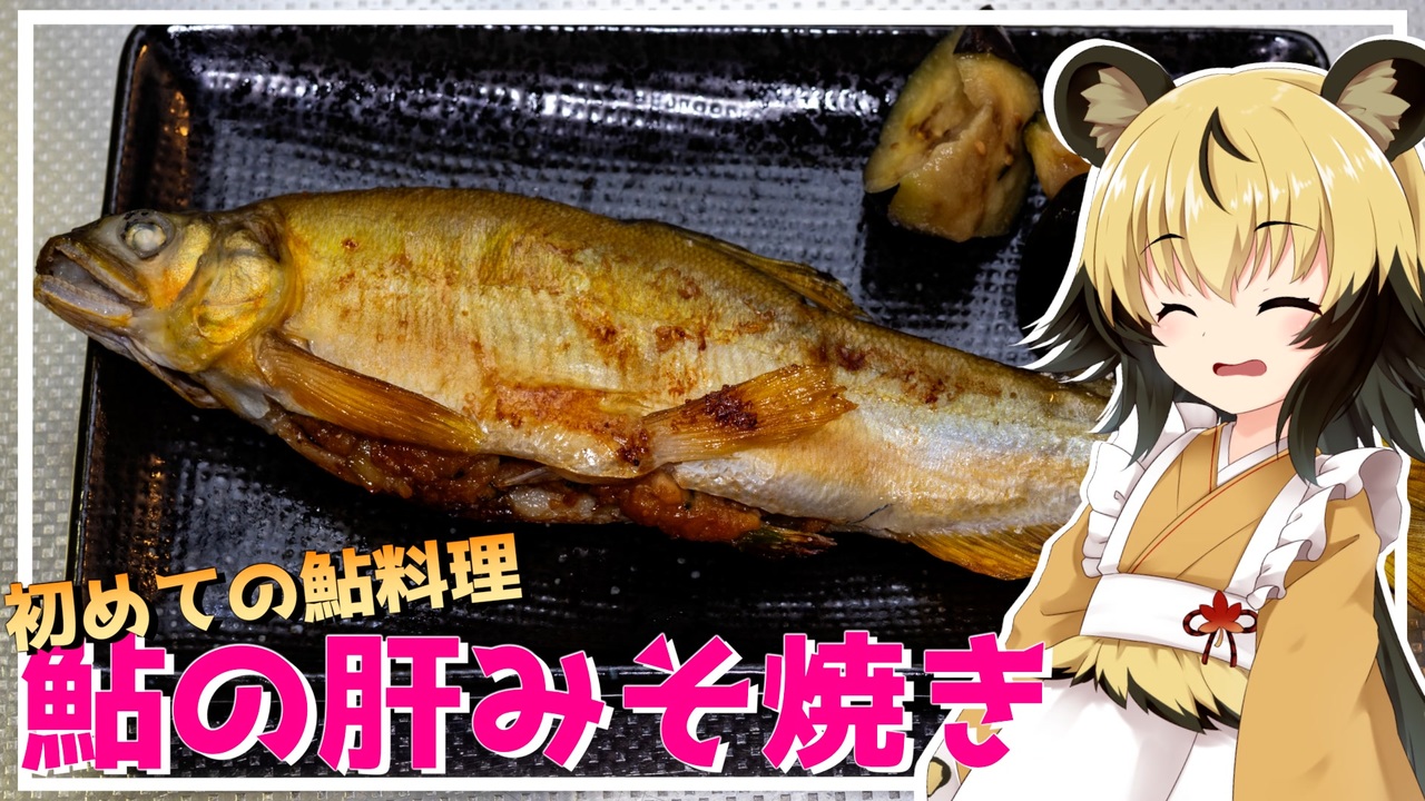 初めて鮎を調理しましたーー!!<br><br>ということで今回は「鮎の肝みそ焼き」です!<br>夏になると、スーパーで養殖の鮎を見かけるようになりましたが、<br>塩焼き以外食べ方を知らない、<br>そして調理したこともない、お客様も多いのではないでしょうか。<br><br>りおんさんはそうでしたwww<br><br>秋刀魚と一緒で鮎も肝が食べられる数少ないお魚です。<br>初めて知りました<br><br>なので、その肝を生かしたメニューにしてみました。<br>ちょっと旬は過ぎてしましましたが、<br>簡単にできるので、ぜひ試してみてくださいね^^<br><br><br>■材料<br>・鮎 1尾<br>・味噌 大さじ1<br>・料理酒 大さじ1<br>・小葱 お好みで<br> ※小葱の代わりにミョウガでもOKです!<br><br>お好みですだちやカボスを添えてくださいね<br><br>■所要時間<br>作業時間:15分程度<br><br>youtube:<a href="https://youtu.be/6szKsvzlgH8" target="_blank" rel="noopener nofollow">https://youtu.be/6szKsvzlgH8</a><br>twitter:@lycaon_kitchen<br><br>りおんの和風喫茶:<a href="https://www.nicovideo.jp/series/77190" target="_blank" rel="noopener">series/77190</a><br>おつかれごはん:<a href="https://www.nicovideo.jp/series/155690" target="_blank" rel="noopener">series/155690</a><br>手作り和菓子でちょっとひとやすみしませんか?:<a href="https://www.nicovideo.jp/series/155691" target="_blank" rel="noopener">series/155691</a><br><br>立ち絵:星華 彩二魔 様<br>イラスト:いらすとや、AWD kitchen<br>音源:DOVA-SYNDROME<br>音声:AI.VOICE 紲星あかり+ exVOICE