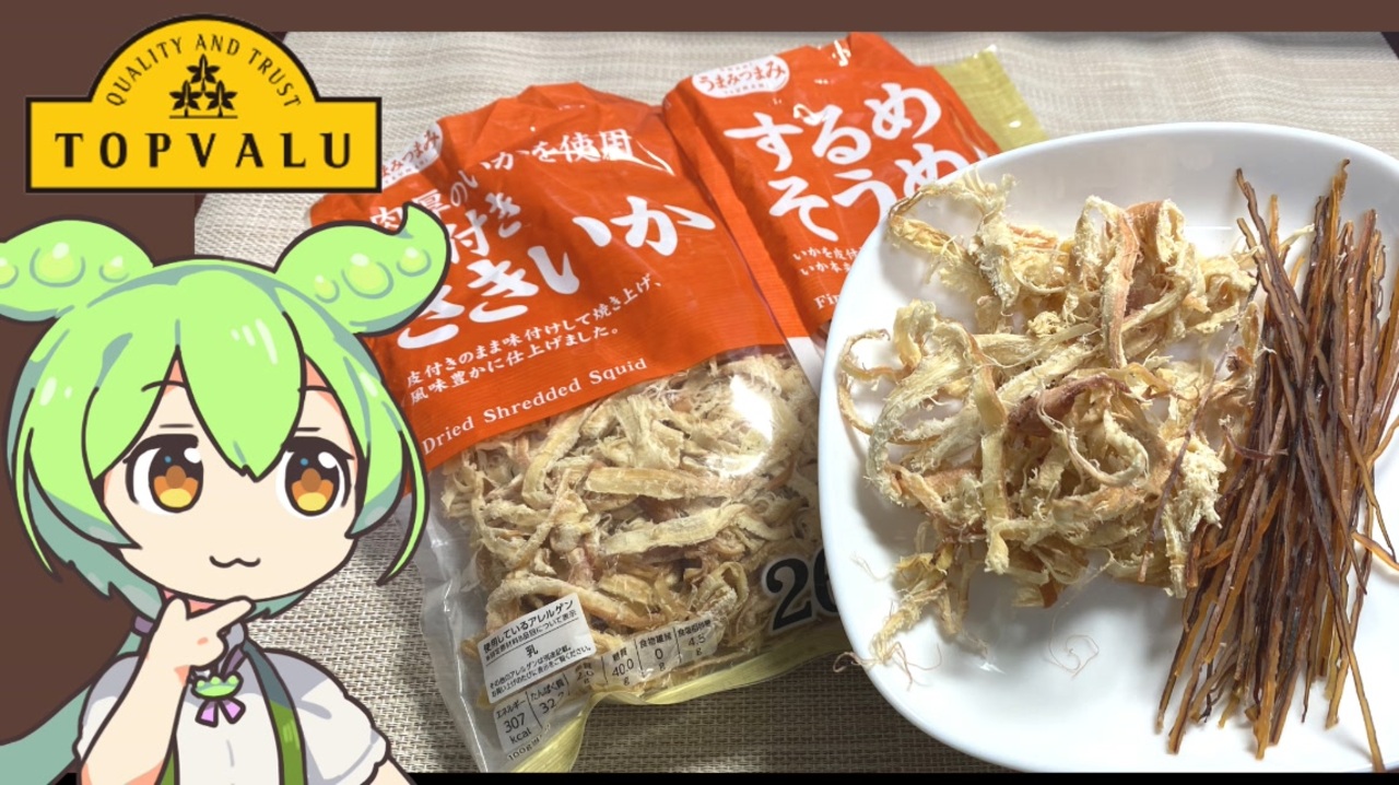 【訂正】02:31の上部字幕の値段が間違っていました。<br> (誤)348円/260g(1.34円/g)→(正)797円/260g(3.07円/g)<br><br><br>新たな隠れトプバ「うまみつまみ」を見つけました。<br><br><br>【参考】<br>うまみつまみ皮付きさきいか(トップバリュ)<br><a href="https://www.topvalu.net/items/detail/4549414528527/" target="_blank" rel="noopener nofollow">https://www.topvalu.net/items/detail/4549414528527/</a><br>ウマミツマミ するめそうめん(トップバリュ)<br><a href="https://www.topvalu.net/items/detail/4549414528541/" target="_blank" rel="noopener nofollow">https://www.topvalu.net/items/detail/4549414528541/</a><br>株式会社秀幸ホームページ<br><a href="http://www.syukoh.co.jp/index.html" target="_blank" rel="noopener nofollow">http://www.syukoh.co.jp/index.html</a><br><br><br>【使用した素材】(※敬称略)<br>(合成音声)VOICEVOX/ずんだもん/四国めたん/<br><a href="https://voicevox.hiroshiba.jp/" target="_blank" rel="noopener nofollow">https://voicevox.hiroshiba.jp/</a><br>(立ち絵)坂本アヒル<br><a href="https://seiga.nicovideo.jp/seiga/im10788496" target="_blank" rel="noopener">im10788496</a>/<a href="https://seiga.nicovideo.jp/seiga/im10791276" target="_blank" rel="noopener">im10791276</a><br>(楽曲)甘茶の音楽工房/「楽しい麦畑」<br><a href="https://amachamusic.chagasi.com/" target="_blank" rel="noopener nofollow">https://amachamusic.chagasi.com/</a>