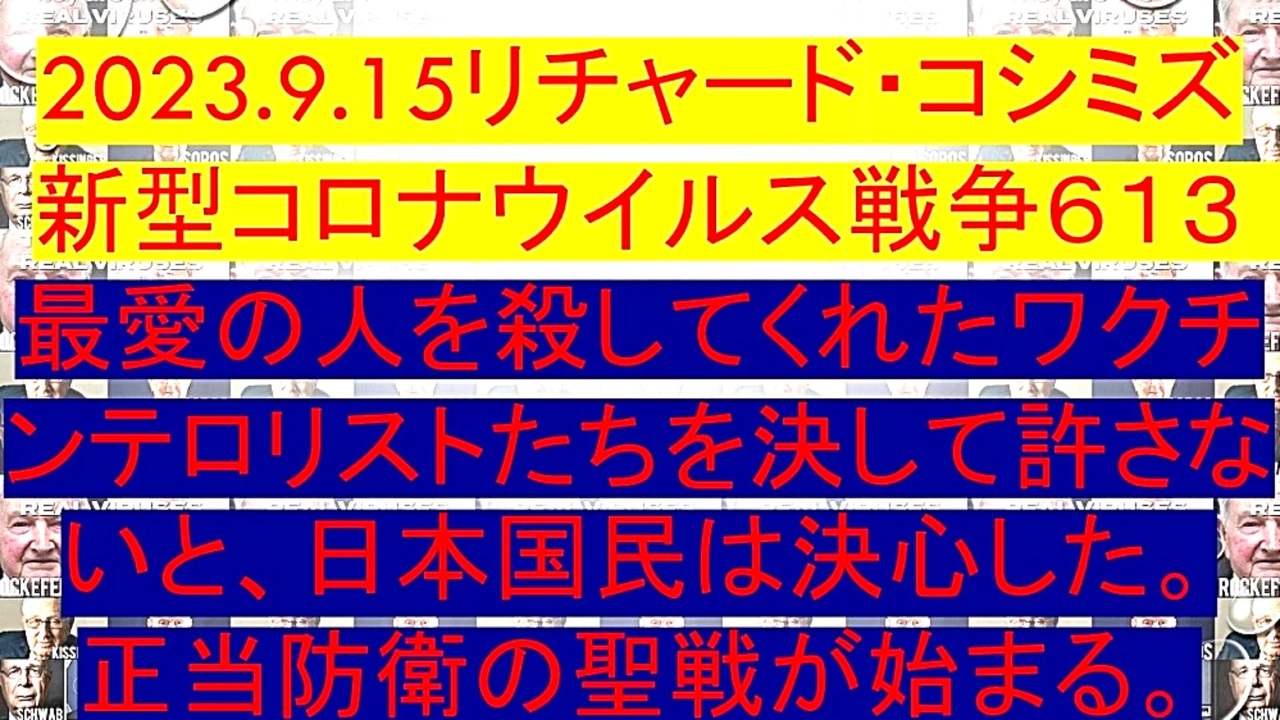 <span style="color: #cc4125;"><strong>「 テーマ : 新型コロナウイルス戦争 613 」</strong></span><br><br><span style="color: #ff0000;"><strong>「『 最愛の人 』を『 殺して 』くれた『 ワクチン・テロリスト 』たちを『 決して許さない 』と、『 日本<br> 国民 』は『 決心 』した。『 正当防衛の聖戦 』が始まる 」</strong></span><br><br><span style="color: #0000ff;"><strong>「『 イベルメクチン・アビガン・その他コロナ対策 』について、ご意見をお寄せ下さい! 」<br><br> ◐ E-mail:richardkoshimizu@gmail.com</strong></span><br><br><strong>◐「クリエイター・サポート」・「ニコニ広告」・「フォロー」等、ご協力の程宜しくお願い致します。RK</strong><br><br><span style="color: #38761d;"><strong>◐ リチャード・コシミズ 講演会 公式 動画ギャラリー</strong></span><br> <span style="color: #38761d;"><strong><a href="http://www.t-sskk.com/richardkoshimizu/video-gallery/index.html" target="_blank" rel="noopener nofollow">http://www.t-sskk.com/richardkoshimizu/video-gallery/index.html</a><br><br>◐ リチャード・コシミズ 講演会『 ニコニコ生放送「 LIVE 」』</strong></span><br> <span style="color: #38761d;"><strong><a href="https://bit.ly/3Bx8F5w" target="_blank" rel="noopener nofollow">https://bit.ly/3Bx8F5w</a><br><br>◐ リチャード・コシミズ『 ニコニコ チャンネル 』</strong></span><br> <span style="color: #38761d;"><strong><a href="https://ch.nicovideo.jp/richardkoshimizu" target="_blank" rel="noopener nofollow">https://ch.nicovideo.jp/richardkoshimizu</a><br><br>◐ リチャード・コシミズ 公式 ブログ</strong></span><br> <span style="color: #38761d;"><strong><a href="http://08054623210.jugem.jp/" target="_blank" rel="noopener nofollow">http://08054623210.jugem.jp/</a><br><br>◐ リチャード・コシミズ 公式 ホームページ</strong></span><br> <span style="color: #38761d;"><strong><a href="http://richardkoshimizu.boo.jp/" target="_blank" rel="noopener nofollow">http://richardkoshimizu.boo.jp/</a></strong></span><br>