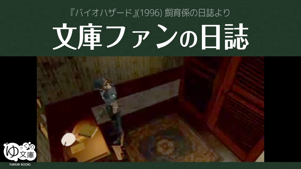 <span style="color: red;"><strong>122x3 投票、くれ──</strong></span><br>「投票しましたツイート」を編集したもの。うれしいやら、申し訳ないやら。いや、うれしい。<br>そんな私のエネルギーになるから、投票して。<br>ご家族、ご友人に呼びかけて。複数アカウントもありよ。<br><br>(元ネタ)<br>『バイオハザード』(1996) 飼育係の日誌より<br>夢中になってやりこんだゲーム。初プレイ時はアイテムボックスの中がつながってると気がつかず、自分が使った弾薬も、「ゾンビに盗まれた」と思いこんでた。<br><br>●10周年記念ベストエピソード総選挙<br>投票サイト:<a href="https://forms.gle/JvhawevygFr2SkYb7" target="_blank" rel="noopener nofollow">https://forms.gle/JvhawevygFr2SkYb7</a><br>告知動画 <a href="https://www.nicovideo.jp/watch/sm42700434" class="watch">sm42700434</a><br>イベント運営Xアカウント:<a href="https://twitter.com/Bunko_10th" target="_blank" rel="noopener nofollow">https://twitter.com/Bunko_10th</a><br><br>●ゆっくり文庫:投票支援パロディ<br><a href="https://www.nicovideo.jp/watch/sm42823647" class="watch">sm42823647</a> 選ぶのはきみだ<br><a href="https://www.nicovideo.jp/watch/sm42822495" class="watch">sm42822495</a> 今度は投票だ<br><a href="https://www.nicovideo.jp/watch/sm42817735" class="watch">sm42817735</a> あの子はどこに?<br><a href="https://www.nicovideo.jp/watch/sm42814772" class="watch">sm42814772</a> マジギレ父子の投票<br><a href="https://www.nicovideo.jp/watch/sm42810972" class="watch">sm42810972</a> 新たなる語り部<br><a href="https://www.nicovideo.jp/watch/sm42807294" class="watch">sm42807294</a> 真夜中のお散歩かい?<br><a href="https://www.nicovideo.jp/watch/sm42798114" class="watch">sm42798114</a> 今は投票が大事だ<br><a href="https://www.nicovideo.jp/watch/sm42798090" class="watch">sm42798090</a> うp主たちの沈黙<br><a href="https://www.nicovideo.jp/watch/sm42782070" class="watch">sm42782070</a> 投票後のVKテスト<br><a href="https://www.nicovideo.jp/watch/sm42782018" class="watch">sm42782018</a> パーマー大統領の決断<br><a href="https://www.nicovideo.jp/watch/sm42782010" class="watch">sm42782010</a> 赤い薬と青い薬<br><a href="https://www.nicovideo.jp/watch/sm42773063" class="watch">sm42773063</a> 文庫ファンの日誌★<br><a href="https://www.nicovideo.jp/watch/sm42773039" class="watch">sm42773039</a> きみの投票がモチベになる<br><a href="https://www.nicovideo.jp/watch/sm42772960" class="watch">sm42772960</a> 落ち着いて聞いてください<br>パロディ全部:<a href="https://www.nicovideo.jp/mylist/75786237" target="_blank" rel="noopener">mylist/75786237</a><br><br>(ゆっくり文庫について)<br>全部:<a href="https://www.nicovideo.jp/mylist/74874627" target="_blank" rel="noopener">mylist/74874627</a><br>近況:<a href="https://twitter.com/trynext" target="_blank" rel="noopener nofollow">https://twitter.com/trynext</a><br>文庫ラジオ:co5782398<br>---<br><br><br><br>
