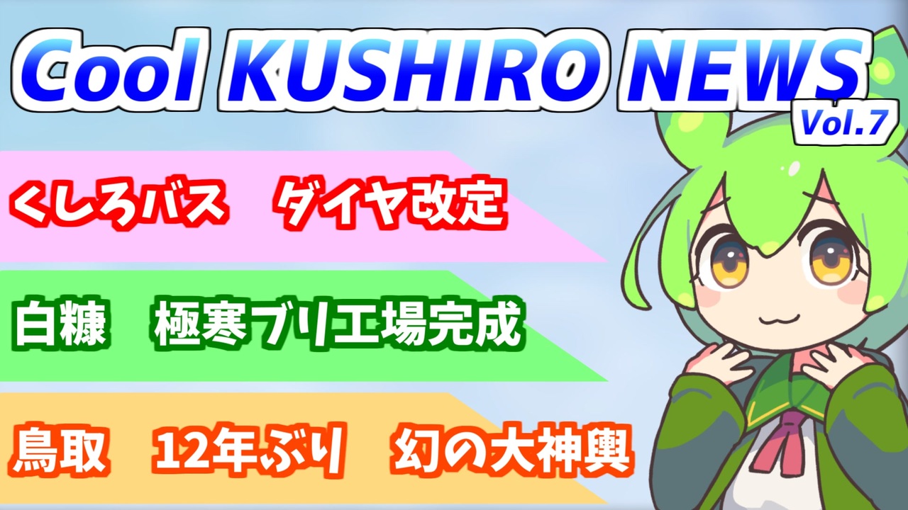 釧路近辺で起こった出来事をなんとなくお伝えするニュース番組です<br><br>ちょっと長くなりました<br><br>ハローワーク釧路<br><a href="https://jsite.mhlw.go.jp/hokkaido-hellowork/newpage_00098.html" target="_blank" rel="noopener nofollow">https://jsite.mhlw.go.jp/hokkaido-hellowork/newpage_00098.html</a><br><br>くしろバス<br><a href="http://www.kushirobus.jp/" target="_blank" rel="noopener nofollow">http://www.kushirobus.jp/</a><br><br>イミュー<br><a href="https://www.immue.co.jp/" target="_blank" rel="noopener nofollow">https://www.immue.co.jp/</a><br><br>虎や<br><a href="http://www.946toraya.com/" target="_blank" rel="noopener nofollow">http://www.946toraya.com/</a><br><br><br><br>●音声ソフト<br>VOICEVOX:ずんだもん<br>VOICEVOX:四国めたん<br>VOICEVOX:九州そら<br><br><br><br /><span style="color: #ff0000; font-size: 24px;"><strong>釧路を紹介するブログ始めました</strong></span>:<a href="https://946de2100.com" target="_blank" rel="noopener nofollow">https://946de2100.com</a><br><br><span style="color: #ff0000; font-size: 16px;"><strong>●おススメ動画:</strong></span><span style="color: #ff0000; font-size: 18px;"><strong>【歴史解説】かつて 釧路を支配していたのは佐賀だった ~釧路元町の始まりと佐野孫右衛門の盛衰~</strong></span><br><br><a href="https://www.nicovideo.jp/watch/sm44267722" class="watch">sm44267722</a><br><br><br><span style="color: #ff0000; font-size: 18px;"><strong>●YouTubeチャンネルも登録よろしくお願いします</strong></span><br><strong>釧路チャンネル <a href="https://www.youtube.com/@znd-kaisetu" target="_blank" rel="noopener nofollow">https://www.youtube.com/@znd-kaisetu</a></strong><br>恋結シラリカソロチャンネル <a href="https://www.youtube.com/@enmusubi-shirarika" target="_blank" rel="noopener nofollow">https://www.youtube.com/@enmusubi-shirarika</a><br><br><br>ほしいものリスト <a href="https://www.amazon.jp/hz/wishlist/ls/2OUUB1JQSRUWG?ref_=wl_share" target="_blank" rel="noopener nofollow">https://www.amazon.jp/hz/wishlist/ls/2OUUB1JQSRUWG?ref_=wl_share</a><br>クリエイターサポート<a href="https://creator-support.nicovideo.jp/registration/116665199" target="_blank" rel="noopener nofollow">https://creator-support.nicovideo.jp/registration/116665199</a>
